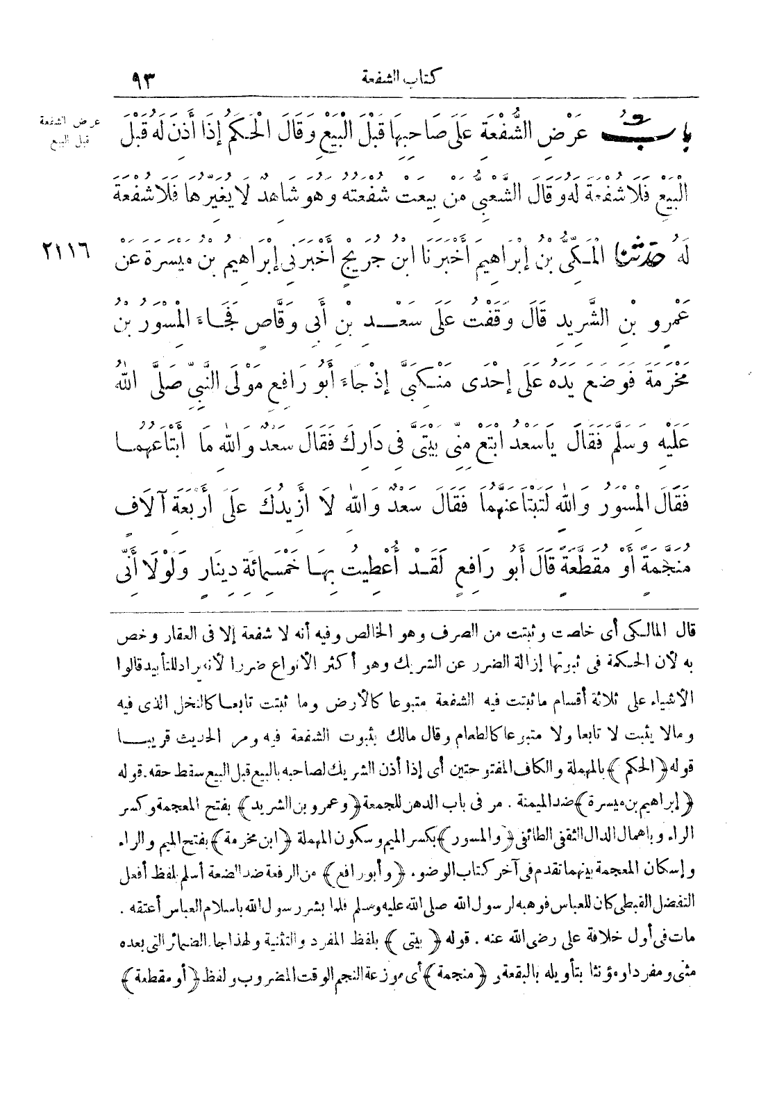 بَاب عَرْضِ الشُّفْعَةِ عَلَى صَاحِبِهَا قَبْلَ الْبَيْعِ