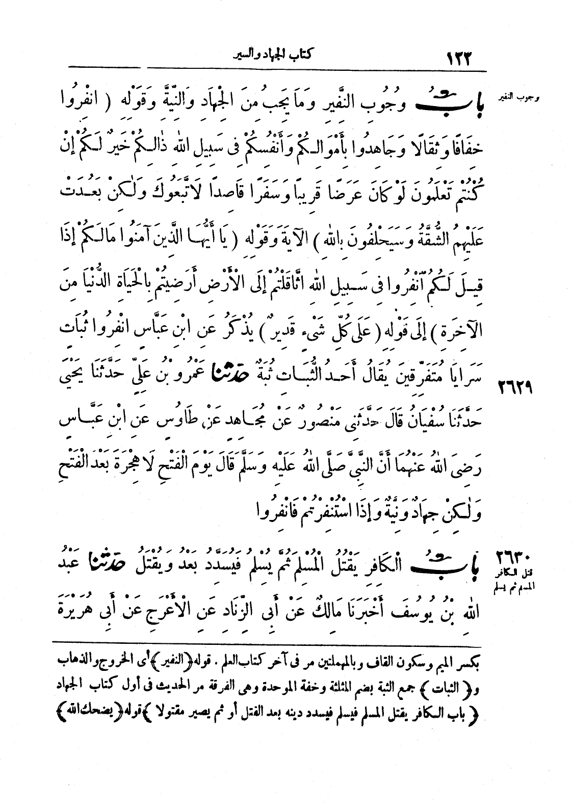 بكسر الميم وسكون القاف وبالمهملتين مر في آخر كتاب العلم. قوله (النفير) أي الخروج والذهاب و (الثبات) جمع الثبة بضم المثلثة وخفة الموحدة وهي الفرقة مر الحديث في أول كتاب الجهاد (باب الكافر يقتل المسلم فيسلم فيسدد دينه بعد القتل أو ثم يصير مقتولاً)) قوله (يضحك الله)