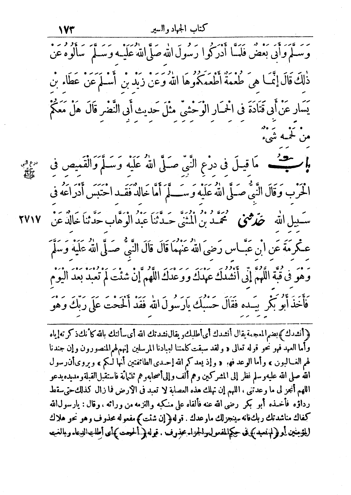 2717 - حَدَّثَنِي مُحَمَّدُ بْنُ الْمُثَنَّى حَدَّثَنَا عَبْدُ الْوَهَّابِ حَدَّثَنَا خَالِدٌ عَنْ عِكْرِمَةَ عَنْ ابْنِ عَبَّاسٍ رَضِيَ اللَّهُ عَنْهُمَا قَالَ قَالَ النَّبِيُّ صَلَّى اللَّهُ عَلَيْهِ وَسَلَّمَ وَهُوَ فِي قُبَّةٍ اللَّهُمَّ إِنِّي أَنْشُدُكَ عَهْدَكَ وَوَعْدَكَ اللَّهُمَّ إِنْ شِئْتَ لَمْ تُعْبَدْ بَعْدَ الْيَوْمِ فَأَخَذَ أَبُو بَكْرٍ بِيَدِهِ فَقَالَ حَسْبُكَ يَا رَسُولَ اللَّهِ فَقَدْ أَلْحَحْتَ عَلَى رَبِّكَ وَهُوَ