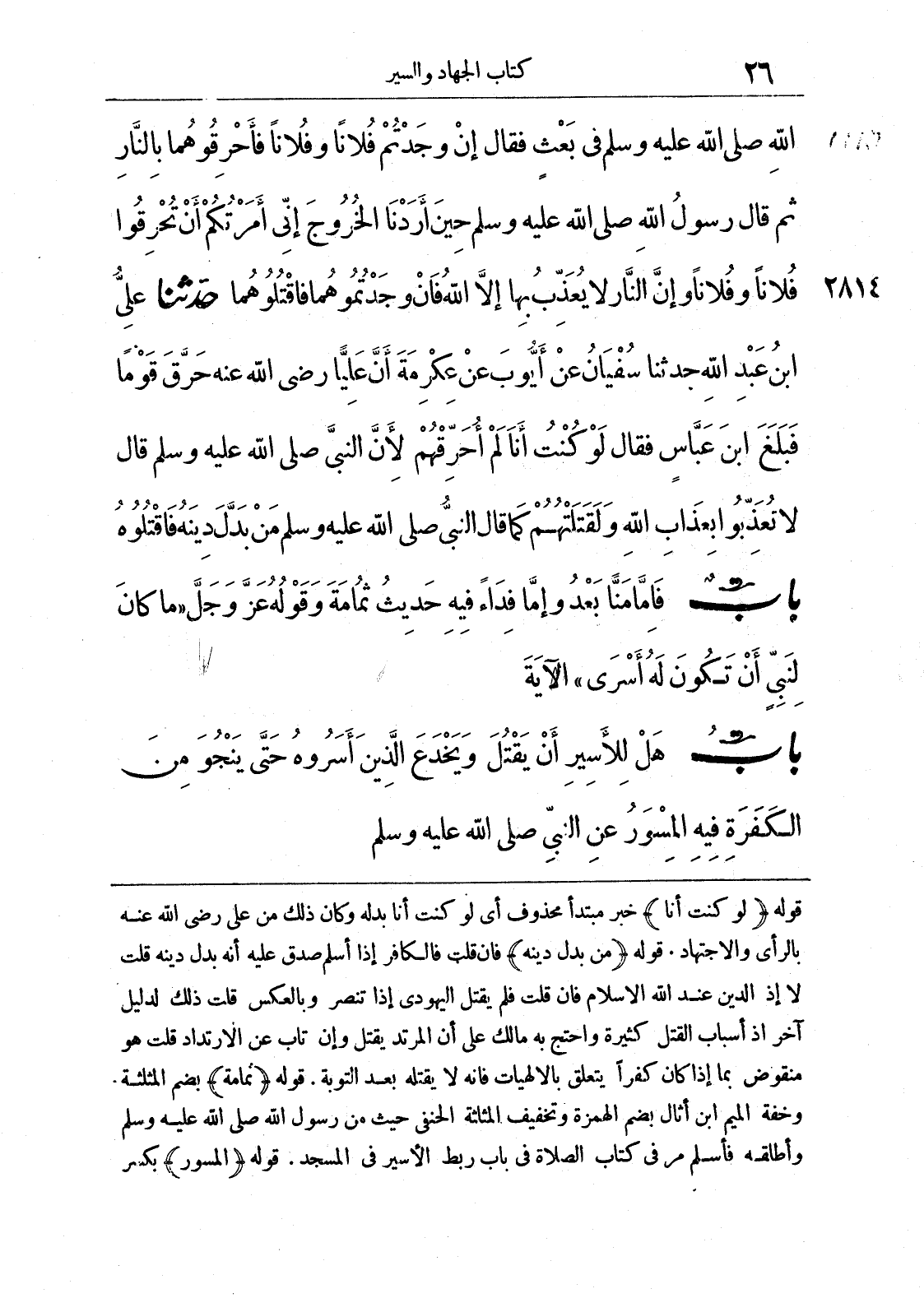 قوله (لو كنت أنا) خبر مبتدأ محذوف أي لو كنت أنا بدله وكان ذلك من علي رضي الله عنه بالرأي والاجتهاد، قوله (من بدل دينه) فإن قلت فالكافر إذا أسلم صدق عليه أنه بدل دينه قلت لا إذ الدين عند الله الإسلام فإن قلت فلم يقتل اليهودي إذا تنصر وبالعكس قلت ذلك لدليل آخر إذ أسباب القتل كثيرة واحتج به مالك على أن المرتد يقتل وإن تاب عن الارتداد قلت هو منقوض بما إذا كان كفرا يتعلق بالإلهيات فإنه لا يقتله بعد التوبة. قوله (تمامة) بضم المثلثة وخفة الميم ابن أثال بضم الهمزة وتخفيف المثلثة الحنفي حيث من رسول الله صلى الله عليه وسلم وأطلقه فأسلم مر في كتاب الصلاة في باب ربط الأسير في المسجد. قوله (المسور) بكسر