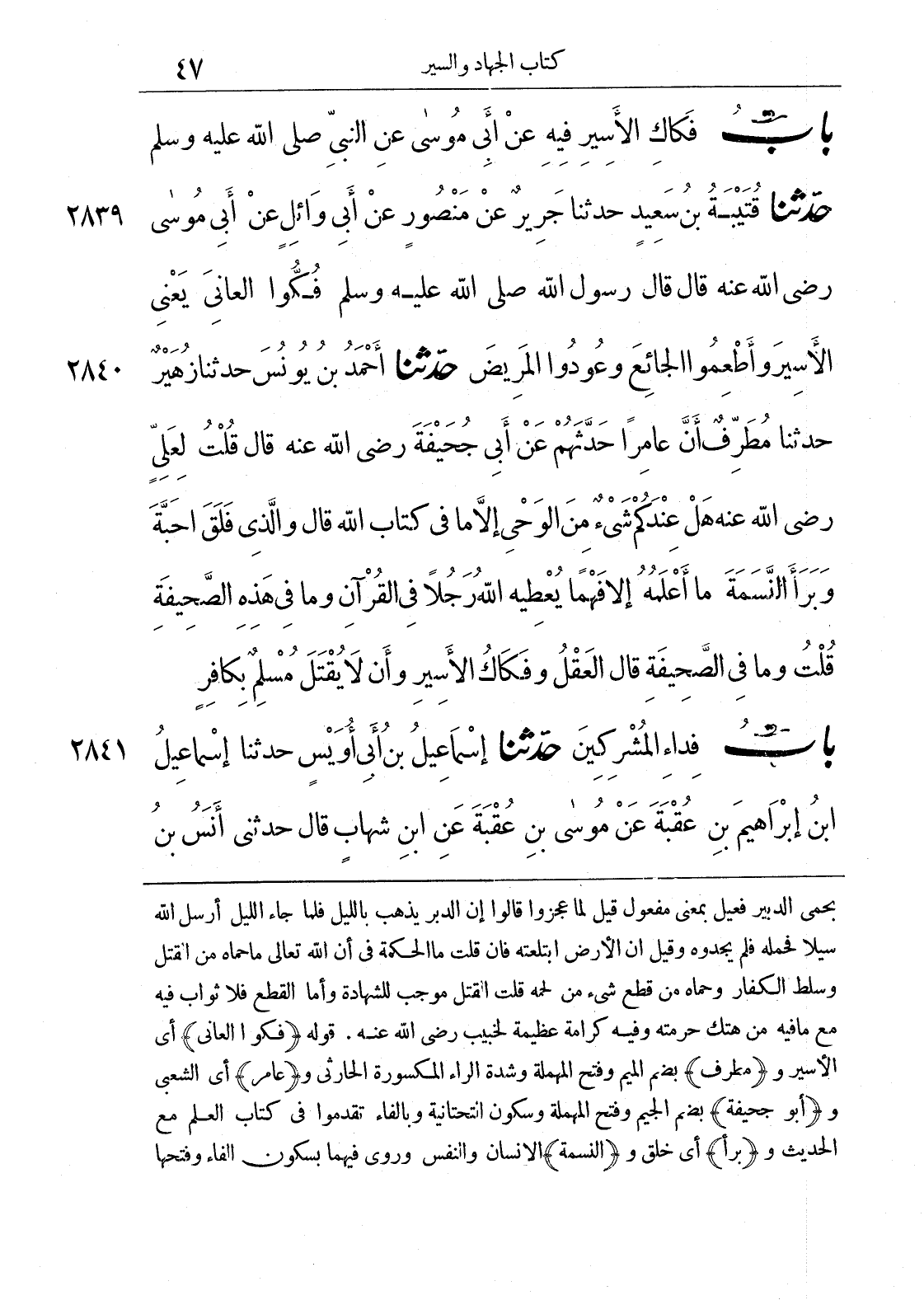 2841 - حَدَّثَنَا إِسْمَاعِيلُ بْنُ أَبِي أُوَيْسٍ حَدَّثَنَا إِسْمَاعِيلُ بْنُ إِبْرَاهِيمَ بْنِ عُقْبَةَ عَنْ مُوسَى بْنِ عُقْبَةَ عَنْ ابْنِ شِهَابٍ قَالَ حَدَّثَنِي أَنَسُ بْنُ