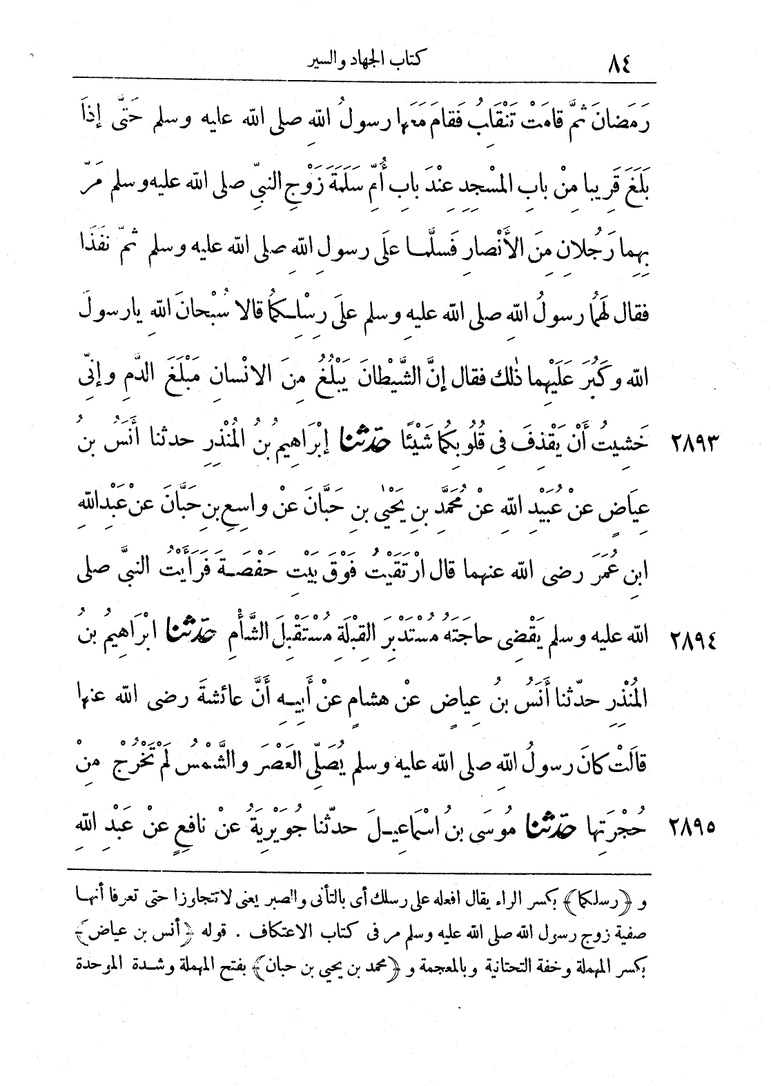 و (رسلكما) بكسر الراء يقال افعله على رسلك أي بالتأني والصبر يعني لا تتجاوزا حتى تعرفا أنها صفية زوج رسول الله صلى الله عليه وسلم مر في كتاب الاعتكاف، قوله (أنس بن عياض) بكسر المهملة وخفة التحتانية وبالمعجمة و (محمد بن يحيى بن حبان) بفتح المهملة وشدة الموحدة