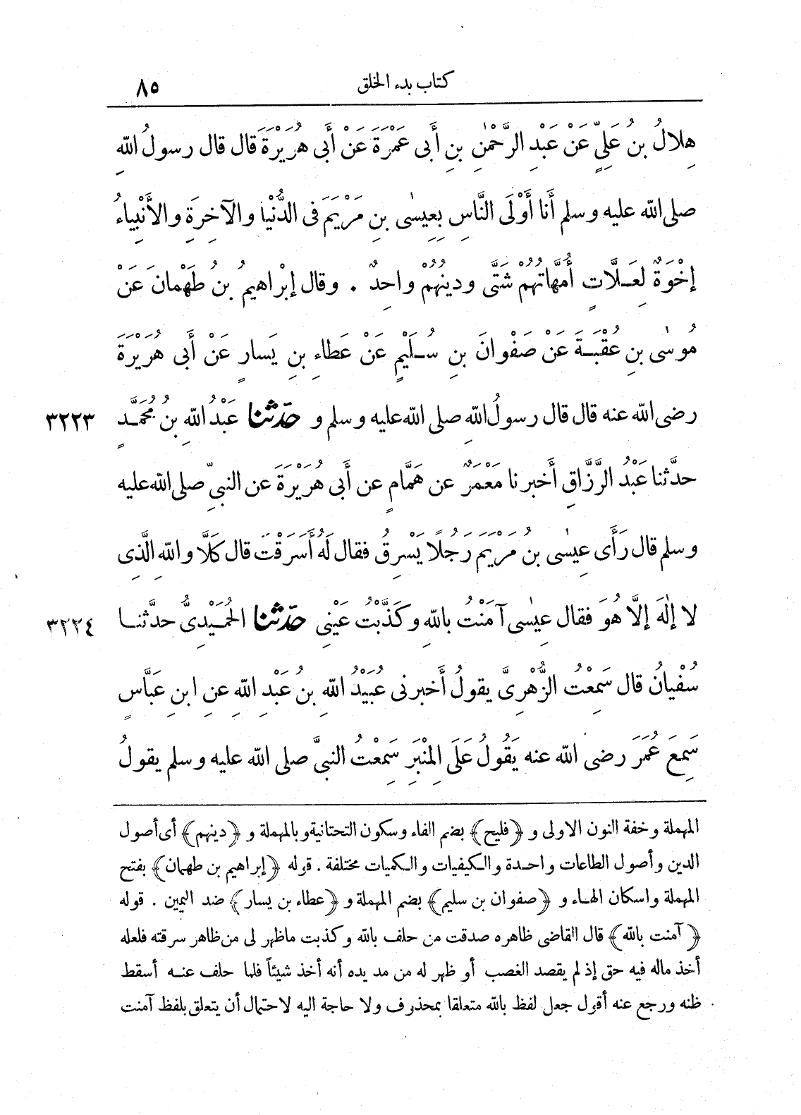 3223 - وَحَدَّثَنَا عَبْدُ اللَّهِ بْنُ مُحَمَّدٍ حَدَّثَنَا عَبْدُ الرَّزَّاقِ أَخْبَرَنَا مَعْمَرٌ عَنْ هَمَّامٍ عَنْ أَبِى هُرَيْرَةَ عَنِ النَّبِىِّ صلى الله عليه وسلم قَالَ «رَأَى عِيسَى ابْنُ مَرْيَمَ رَجُلاً يَسْرِقُ، فَقَالَ لَهُ أَسَرَقْتَ قَالَ كَلاَّ وَاللَّهِ الَّذِى لاَ إِلَهَ إِلاَّ هُوَ. فَقَالَ عِيسَى آمَنْتُ بِاللَّهِ وَكَذَّبْتُ عَيْنِى».