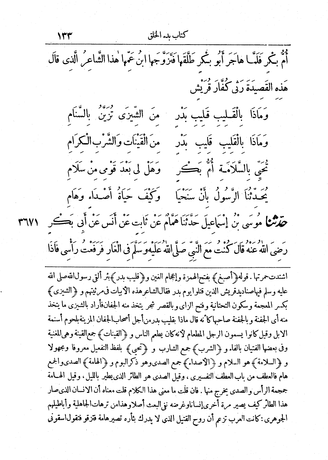 وَمَاذَا بِالْقَلِيبِ قَلِيبِ بَدْرٍ مِنْ الْقَيْنَاتِ وَالشَّرْبِ الْكِرَامِ