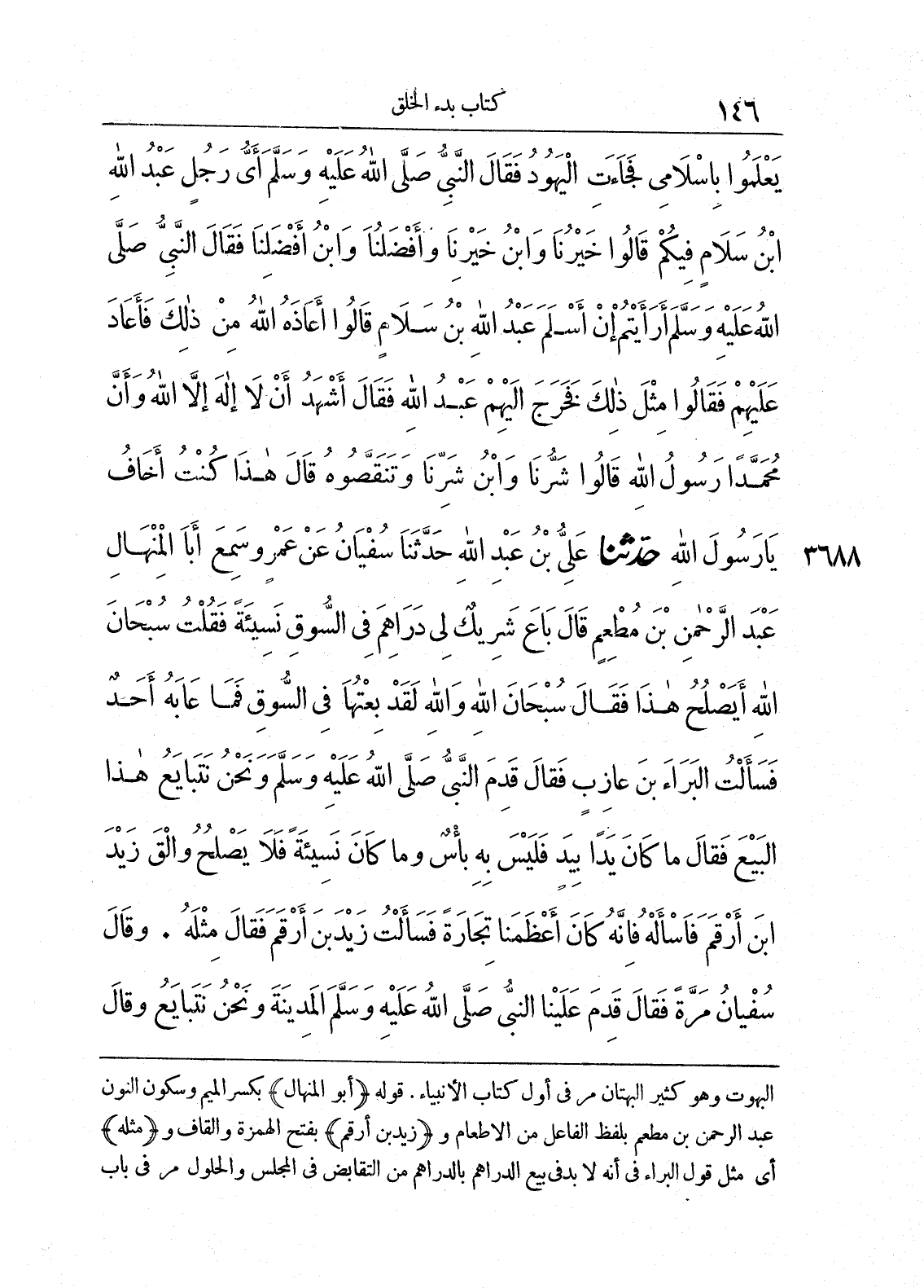 3688 - يَا رَسُولَ اللَّهِ حَدَّثَنَا عَلِيُّ بْنُ عَبْدِ اللَّهِ حَدَّثَنَا سُفْيَانُ عَنْ عَمْرٍو سَمِعَ أَبَا الْمِنْهَالِ عَبْدَ الرَّحْمَنِ بْنَ مُطْعِمٍ قَالَ بَاعَ شَرِيكٌ لِي دَرَاهِمَ فِي السُّوقِ نَسِيئَةً فَقُلْتُ سُبْحَانَ اللَّهِ أَيَصْلُحُ هَذَا فَقَالَ سُبْحَانَ اللَّهِ وَاللَّهِ لَقَدْ بِعْتُهَا فِي السُّوقِ فَمَا عَابَهُ أَحَدٌ فَسَأَلْتُ الْبَرَاءَ بْنَ عَازِبٍ فَقَالَ قَدِمَ النَّبِيُّ صَلَّى اللَّهُ عَلَيْهِ وَسَلَّمَ وَنَحْنُ نَتَبَايَعُ هَذَا الْبَيْعَ فَقَالَ مَا كَانَ يَدًا بِيَدٍ فَلَيْسَ بِهِ بَاسٌ وَمَا كَانَ نَسِيئَةً فَلَا يَصْلُحُ وَالْقَ زَيْدَ بْنَ أَرْقَمَ فَاسْأَلْهُ فَإِنَّهُ كَانَ أَعْظَمَنَا تِجَارَةً فَسَأَلْتُ زَيْدَ بْنَ أَرْقَمَ فَقَالَ مِثْلَهُ وَقَالَ سُفْيَانُ مَرَّةً فَقَالَ قَدِمَ عَلَيْنَا النَّبِيُّ صَلَّى اللَّهُ عَلَيْهِ وَسَلَّمَ الْمَدِينَةَ وَنَحْنُ نَتَبَايَعُ وَقَالَ