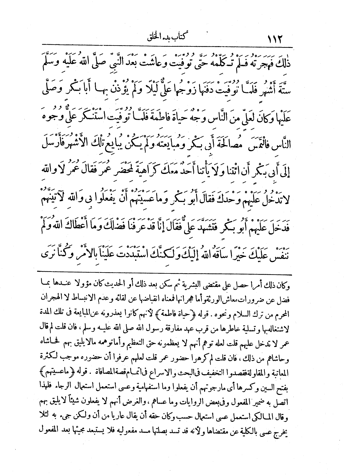 ذَلِكَ فَهَجَرَتْهُ، فَلَمْ تُكَلِّمْهُ حَتَّى تُوُفِّيَتْ، وَعَاشَتْ بَعْدَ النَّبِىِّ صلى الله عليه وسلم سِتَّةَ أَشْهُرٍ، فَلَمَّا تُوُفِّيَتْ، دَفَنَهَا زَوْجُهَا عَلِىٌّ لَيْلاً، وَلَمْ يُؤْذِنْ بِهَا أَبَا بَكْرٍ وَصَلَّى عَلَيْهَا، وَكَانَ لِعَلِىٍّ مِنَ النَّاسٍ وَجْهٌ حَيَاةَ فَاطِمَةَ، فَلَمَّا تُوُفِّيَتْ اسْتَنْكَرَ عَلِىٌّ وُجُوهَ النَّاسِ، فَالْتَمَسَ مُصَالَحَةَ أَبِى بَكْرٍ وَمُبَايَعَتَهُ، وَلَمْ يَكُنْ يُبَايِعُ تِلْكَ الأَشْهُرَ، فَأَرْسَلَ إِلَى أَبِى بَكْرٍ أَنِ ائْتِنَا، وَلاَ يَاتِنَا أَحَدٌ مَعَكَ، كَرَاهِيَةً لِمَحْضَرِ عُمَرَ. فَقَالَ عُمَرُ لاَ وَاللَّهِ لاَ تَدْخُلُ عَلَيْهِمْ وَحْدَكَ. فَقَالَ أَبُو بَكْرٍ وَمَا عَسَيْتَهُمْ أَنْ يَفْعَلُوا بِى، وَاللَّهِ لآتِيَنَّهُمْ. فَدَخَلَ عَلَيْهِمْ أَبُو بَكْرٍ، فَتَشَهَّدَ عَلِىٌّ فَقَالَ إِنَّا قَدْ عَرَفْنَا فَضْلَكَ، وَمَا أَعْطَاكَ، اللَّهُ وَلَمْ نَنْفَسْ عَلَيْكَ خَيْراً سَاقَهُ اللَّهُ إِلَيْكَ، وَلَكِنَّكَ اسْتَبْدَدْتَ عَلَيْنَا بِالأَمْرِ، وَكُنَّا نَرَى