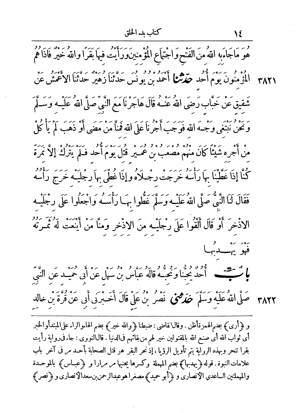 ) وارى (بضم الهمزة أظن. وقال القاضي: ضبطنا) والله خير (بضم الهاء والراء على المبتدأ والخبر أي ثواب الله أي صنع الله بالمقتولين خير لهم من بقائهم في الدنيا. قال النووي: جاء في رواية رأيت بقرا تنحر وبهذه الرواية يتم تأويل الرؤيا، إذ نحر البقر هو قتل الصحابة بأحد مر في أخر باب علامات النبوة. قوله) يهديها (بضم المهملة وكسرها يجنيها مر مرارا) وعباس (بالموحدة والمهملتين الساعدي الأنصاري) وأبو حميد (مصغرا هو عبد الرحمن بن سعد الأنصاري) ونصر (