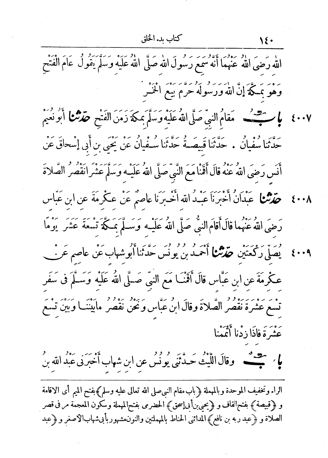 4007 - حَدَّثَنَا أَبُو نُعَيْمٍ حَدَّثَنَا سُفْيَانُ. حَدَّثَنَا قَبِيصَةُ حَدَّثَنَا سُفْيَانُ عَنْ يَحْيَى بْنِ أَبِى إِسْحَاقَ عَنْ أَنَسٍ - رضى الله عنه - قَالَ أَقَمْنَا مَعَ النَّبِىِّ صلى الله عليه وسلّم عَشْراً نَقْصُرُ الصَّلاَةَ.