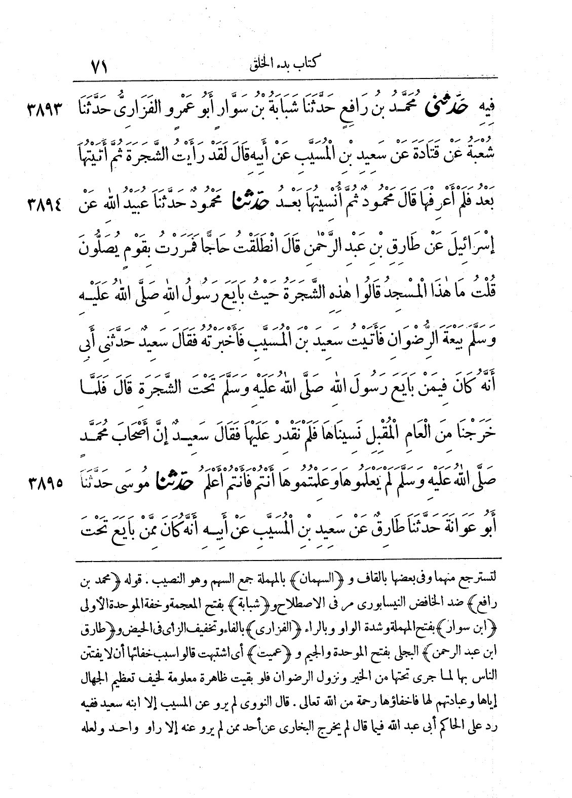 3893 - حَدَّثَنِى مُحَمَّدُ بْنُ رَافِعٍ حَدَّثَنَا شَبَابَةُ بْنُ سَوَّارٍ أَبُو عَمْرٍو الْفَزَارِىُّ حَدَّثَنَا شُعْبَةُ عَنْ قَتَادَةَ عَنْ سَعِيدِ بْنِ الْمُسَيَّبِ عَنْ أَبِيهِ قَالَ لَقَدْ رَأَيْتُ الشَّجَرَةَ، ثُمَّ أَتَيْتُهَا بَعْدُ فَلَمْ أَعْرِفْهَا. قَالَ مَحْمُودٌ ثُمَّ أُنْسِيتُهَا بَعْدُ.