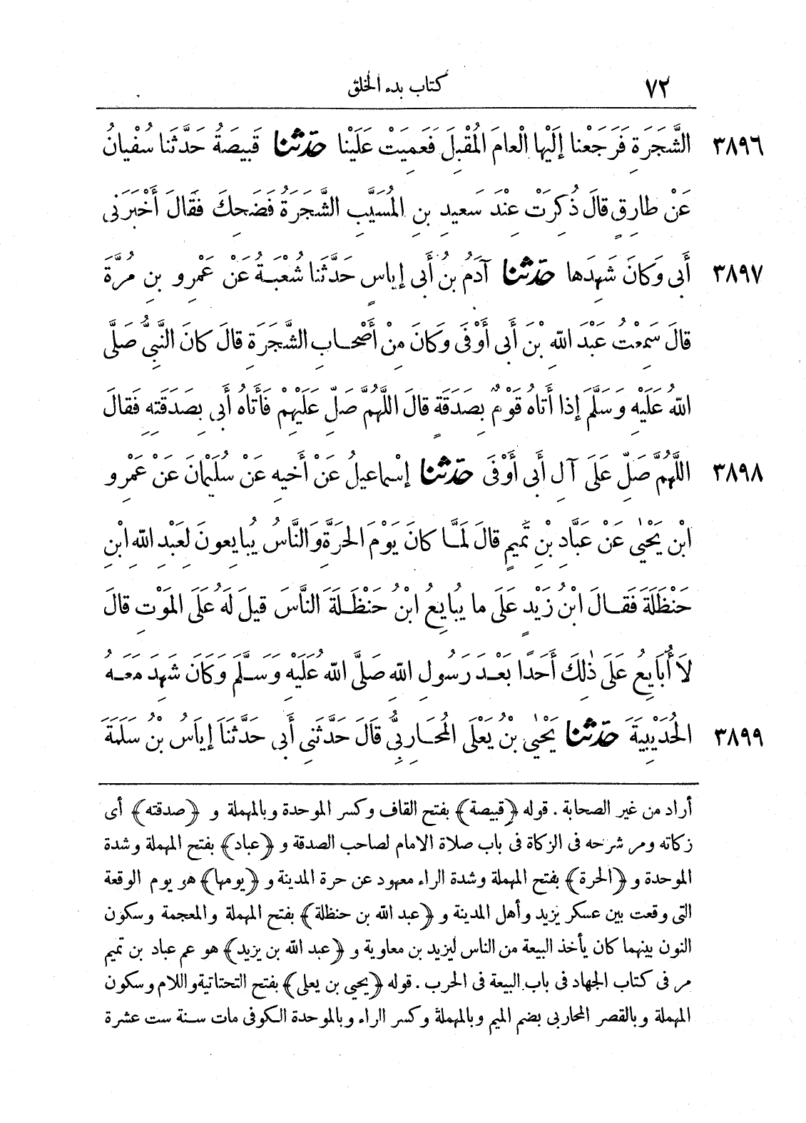 3896 - حَدَّثَنَا قَبِيصَةُ حَدَّثَنَا سُفْيَانُ عَنْ طَارِقٍ قَالَ ذُكِرَتْ عِنْدَ سَعِيدِ بْنِ الْمُسَيَّبِ الشَّجَرَةُ فَضَحِكَ فَقَالَ أَخْبَرَنِى أَبِى وَكَانَ شَهِدَهَا.