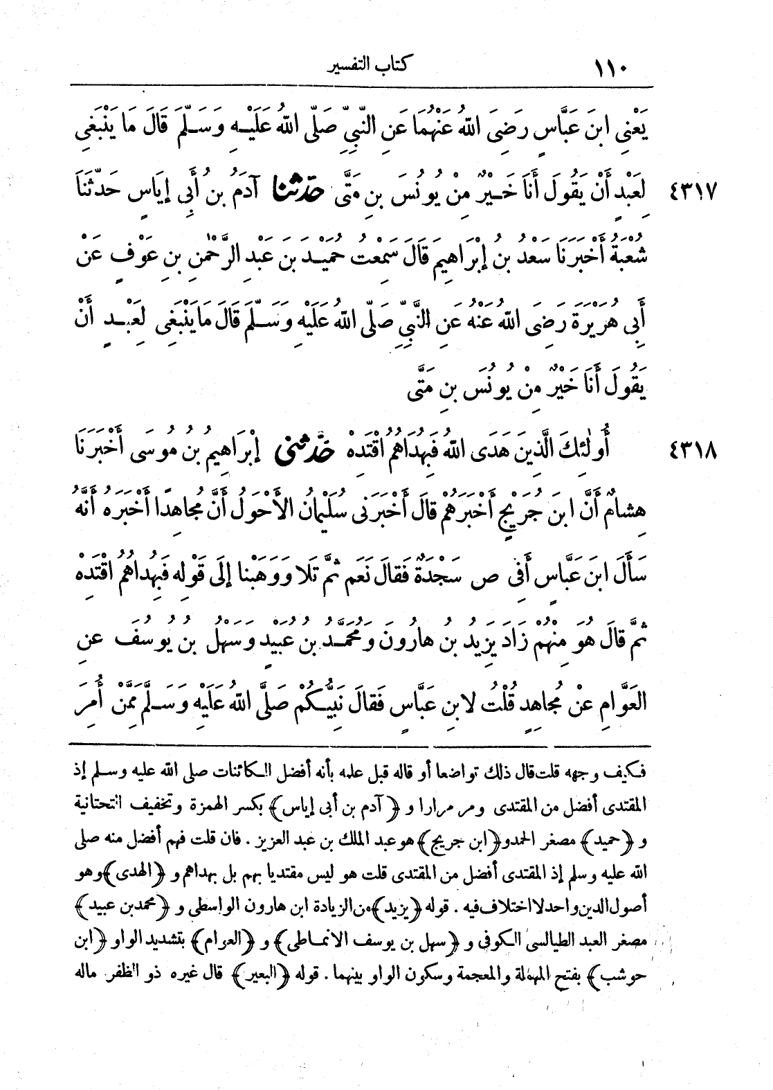 4318 - حَدَّثَنِي إِبْرَاهِيمُ بْنُ مُوسَى أَخْبَرَنَا هِشَامٌ أَنَّ ابْنَ جُرَيْجٍ أَخْبَرَهُمْ قَالَ أَخْبَرَنِي سُلَيْمَانُ الْأَحْوَلُ أَنَّ مُجَاهِدًا أَخْبَرَهُ أَنَّهُ سَأَلَ ابْنَ عَبَّاسٍ