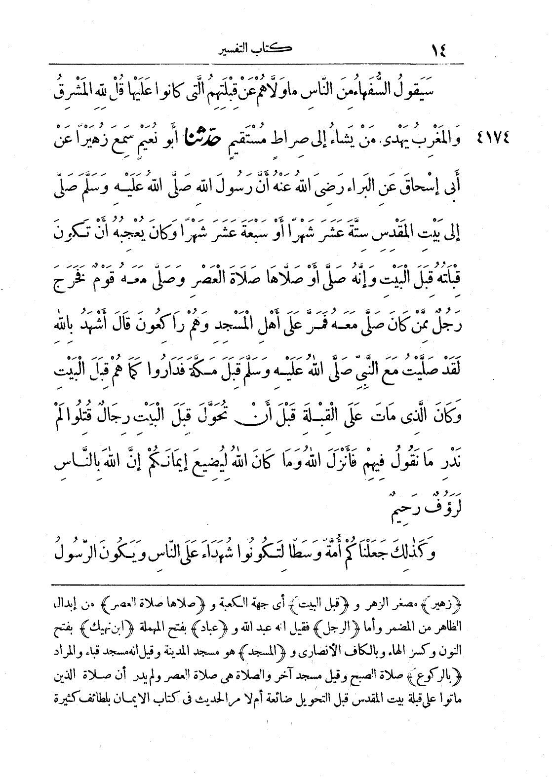 (زهير) مصغر الزهر و (قبل البيت) أي جهة الكعبة و (صلاها صلاة العصر) من إبدال الظاهر من المضمر وأما (الرجل) فقيل أنه عبد الله و (عباد) بفتح المهملة (ابن نهيك) بفتح النون وكسر الهاء وبالكاف الأنصاري و (المسجد) هو مسجد المدينة وقيل إنه مسجد قباء والمراد (بالركوع) ص2لاة الصبح وقيل مسجد آخر والصلاة هي صلاة العصر ولم يدر أن صلاة الذين ماتوا على قبلة بيت المقدس قبل التحويل ضائعة والصلاة هي صلاة العصر ولم يدر أن صلاة الذين ماتوا على قبلة بيت المقدس قبل التحويل ضائعة أم لا مر الحديث في كتاب الإيمان بلطائف كثيرة