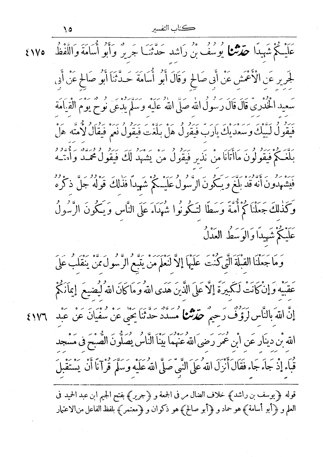 {وَكَذَلِكَ جَعَلْنَاكُمْ أُمَّةً وَسَطًا لِتَكُونُوا شُهَدَاءَ عَلَى النَّاسِ وَيَكُونَ الرَّسُولُ عَلَيْكُمْ شَهِيدًا}