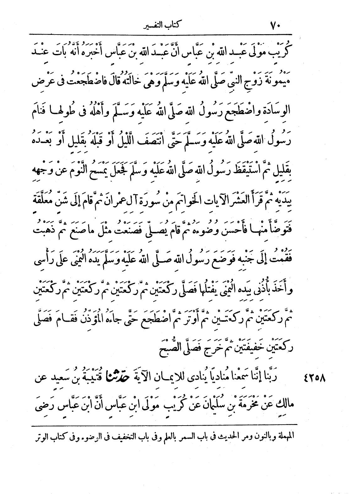 4258 - حَدَّثَنَا قُتَيْبَةُ بْنُ سَعِيدٍ عَنْ مَالِكٍ عَنْ مَخْرَمَةَ بْنِ سُلَيْمَانَ عَنْ كُرَيْبٍ مَوْلَى ابْنِ عَبَّاسٍ أَنَّ ابْنَ عَبَّاسٍ رَضِيَ