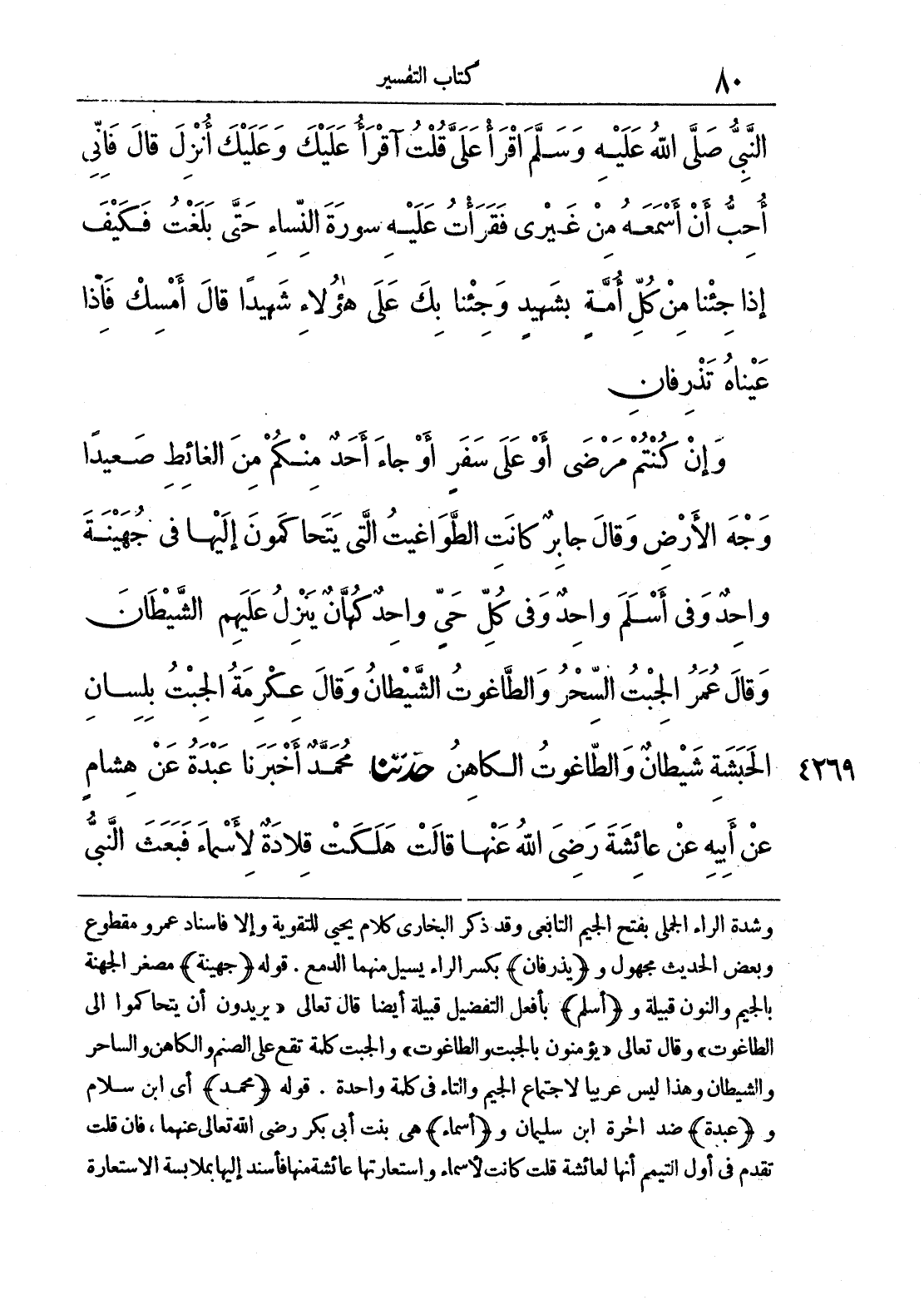 وشدة الراء الجملى بفتح الجيم التابعي وقد ذكر البخاري كلام يحيى للتقوية وإلا فإسناد عمرو مقطوع وبعض الحديث مجهول و (يذرفان) بكسر الراء منهما الدمع. قوله (جهينة) مصغر الجهنة بالجيم والنون قبيلة و (أسلم) بأفعل التفضيل قبيلة أيضا قال تعالى "يريدون أن يتحاكموا إلى الطاغوت" وقال تعالى "يؤمنون بالجبت والطاغوت" والجبت كلمة تقع على الصنم والكاهن والساحر والشيطان وهذا ليس عربيا لاجتماع الجيم والتاء في كلمة واحدة. قوله (محمد) أي ابن سلام و (عبدة) ضد الحرة ابن سليمان و (أسماء) هي بنت أبي بكر رضي الله تعالى عنها، فإن قلت تقدم في أول التيمم أنها لعائشة قلت كانت لأسماء واستعارتها عائشة منها فأسند إليها بملابسة الاستعارة