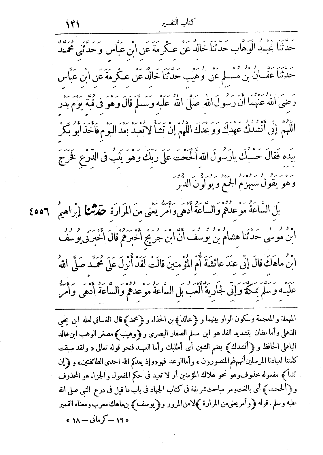 المهملة والمعجمة وسكون الواو بينهما و (خالد) بن الحذاء و (محمد) قال الغساني لعله ابن يحيي الذهلي وأما عفان بتشديد الفاء هو ابن مسلم الصفار البصري و (وهيب) مصغر الوهب ابن خالد الباهلي الحافظ و (أنشدك) بضم الشين أي أطلبك وأما العهد فنحو قوله تعالى (ولقد سبقت كلمتنا لعبادنا أنهم لهم المنصورون) وأما الوعد فهو «وإذ يعدكم الله أحدى الطائفتين» و (إن تشأ) مفعوله محذوف وهو نحو هلاك المؤمنين أو لا تعبد في حكم المفعول والجزاء هو المحذوف و (ألححت) أي بالغت ومر مباحث شريفة في كتاب الجهاد في باب ما قيل في درع النبي صلى الله عليه وسلم. قوله (وأمر يعني من المرارة) لا من المرور و (يوسف) بن ماهك معرب ومعناه القمير