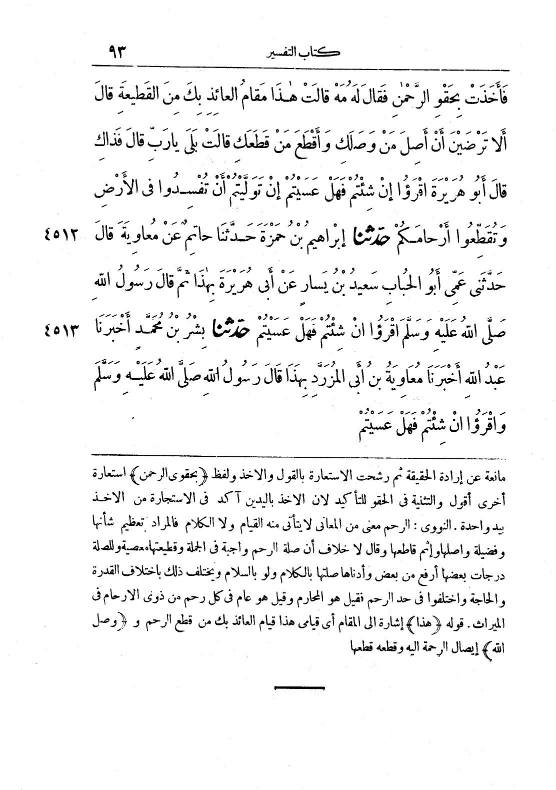4512 - حَدَّثَنَا إِبْرَاهِيمُ بْنُ حَمْزَةَ حَدَّثَنَا حَاتِمٌ عَنْ مُعَاوِيَةَ قَالَ حَدَّثَنِي عَمِّي أَبُو الْحُبَابِ سَعِيدُ بْنُ يَسَارٍ عَنْ أَبِي هُرَيْرَةَ بِهَذَا ثُمَّ قَالَ رَسُولُ اللَّهِ صَلَّى اللَّهُ عَلَيْهِ وَسَلَّمَ اقْرَءُوا إِنْ شِئْتُمْ {فَهَلْ عَسَيْتُمْ}