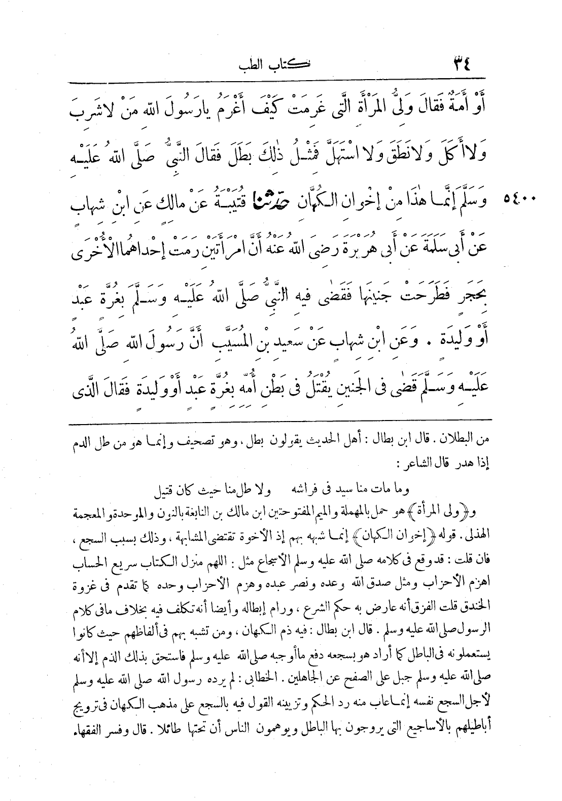 أَوْ أَمَةٌ فَقَالَ وَلِيُّ الْمَرْأَةِ الَّتِي غَرِمَتْ كَيْفَ أَغْرَمُ يَا رَسُولَ اللَّهِ مَنْ لَا شَرِبَ وَلَا أَكَلَ وَلَا نَطَقَ وَلَا اسْتَهَلَّ فَمِثْلُ ذَلِكَ يُطَلُّ فَقَالَ النَّبِيُّ صَلَّى اللَّهُ عَلَيْهِ وَسَلَّمَ إِنَّمَا هَذَا مِنْ إِخْوَانِ الْكُهَّانِ