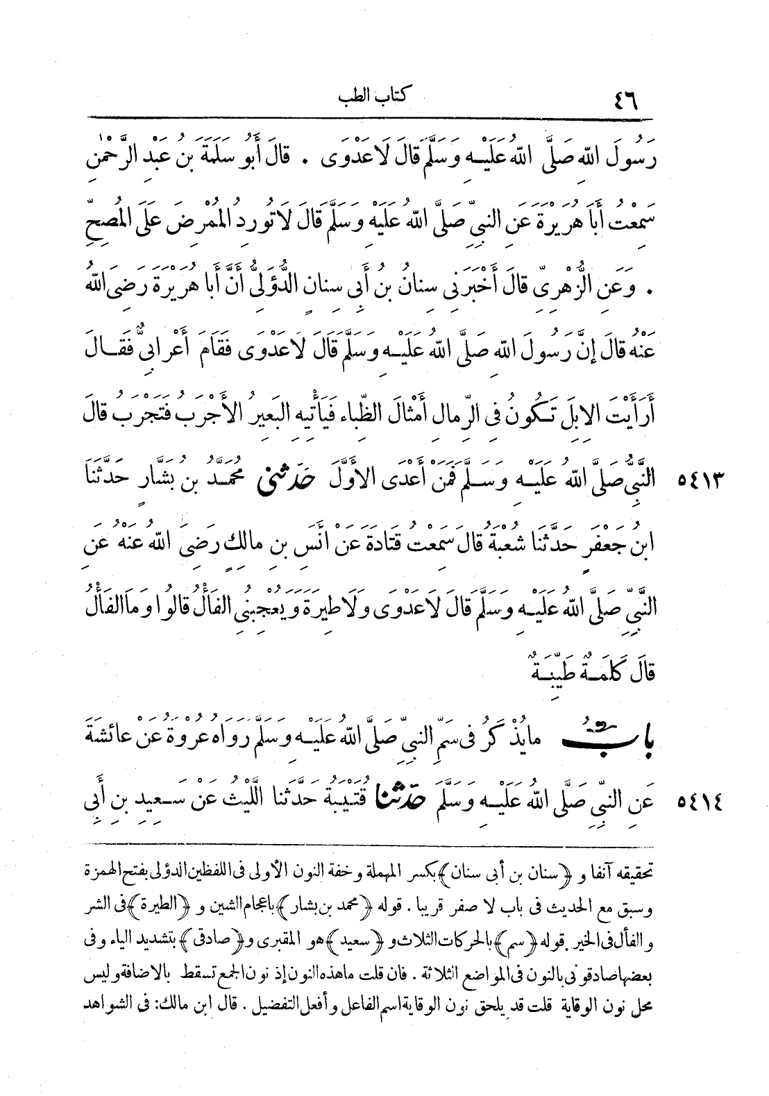 تحقيقه آنفا و {سنان بن أبي سنان} بكسر المهملة خفة النون الأولى في اللفظين الدؤلي بفتح الهمزة وسبق مع الحديث في باب لا صفر قريبا. قوله {محمد بن بشار} بإعجام الشين و {الطيرة} في الشر والفأل في الخير. {باب ما يذكر في سم النبي صلى الله عليه وسلم} قوله {سم} بالحركات الثلاثة. و {سعيد} هو المقبري و {صادقي} بتشديد الياء وفي بعضها صادقوني بالنون في المواضع الثلاث. فإن قلت ما هذه النون إذ نون الجمع تسقط بالإضافة وليس محل نون الوقاية قلت قد يلحق نون الوقاية اسم الفاعل وأفعل التفضيل. قال ابن مالك: في الشواهد