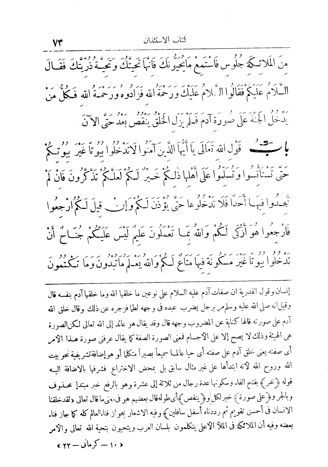 بَاب قَوْلِ اللَّهِ تَعَالَى {يَا أَيُّهَا الَّذِينَ آمَنُوا لَا تَدْخُلُوا بُيُوتًا غَيْرَ بُيُوتِكُمْ حَتَّى تَسْتَانِسُوا وَتُسَلِّمُوا عَلَى أَهْلِهَا ذَلِكُمْ خَيْرٌ لَكُمْ لَعَلَّكُمْ تَذَّكَّرُونَ فَإِنْ لَمْ تَجِدُوا فِيهَا أَحَدًا فَلَا تَدْخُلُوهَا حَتَّى يُؤْذَنَ لَكُمْ وَإِنْ قِيلَ لَكُمْ ارْجِعُوا فَارْجِعُوا هُوَ أَزْكَى لَكُمْ وَاللَّهُ بِمَا تَعْمَلُونَ عَلِيمٌ لَيْسَ عَلَيْكُمْ جُنَاحٌ أَنْ تَدْخُلُوا بُيُوتًا غَيْرَ مَسْكُونَةٍ فِيهَا مَتَاعٌ لَكُمْ وَاللَّهُ يَعْلَمُ مَا تُبْدُونَ وَمَا تَكْتُمُونَ}