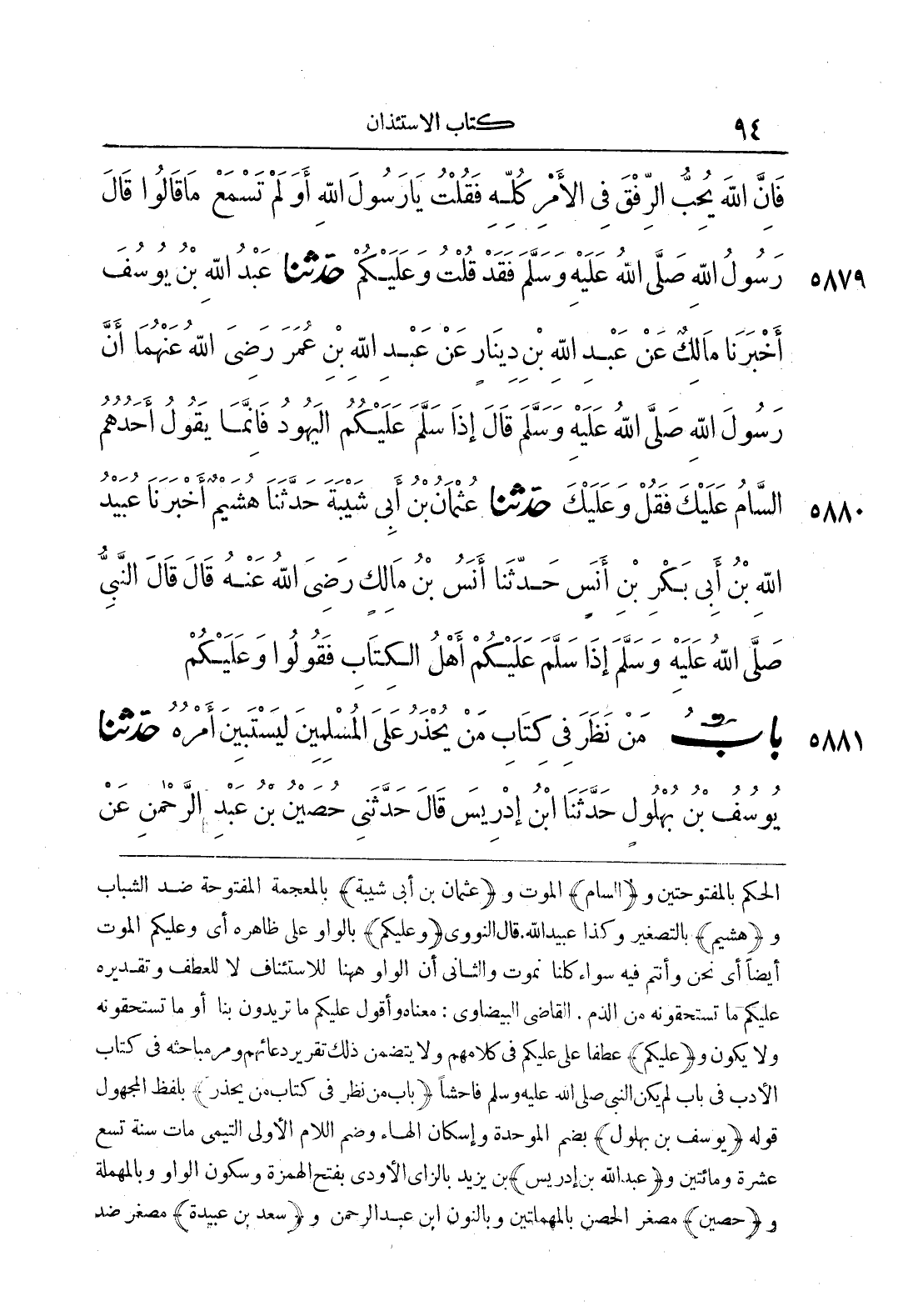 5881 - حَدَّثَنَا يُوسُفُ بْنُ بُهْلُولٍ حَدَّثَنَا ابْنُ إِدْرِيسَ قَالَ حَدَّثَنِي حُصَيْنُ بْنُ عَبْدِ الرَّحْمَنِ عَنْ