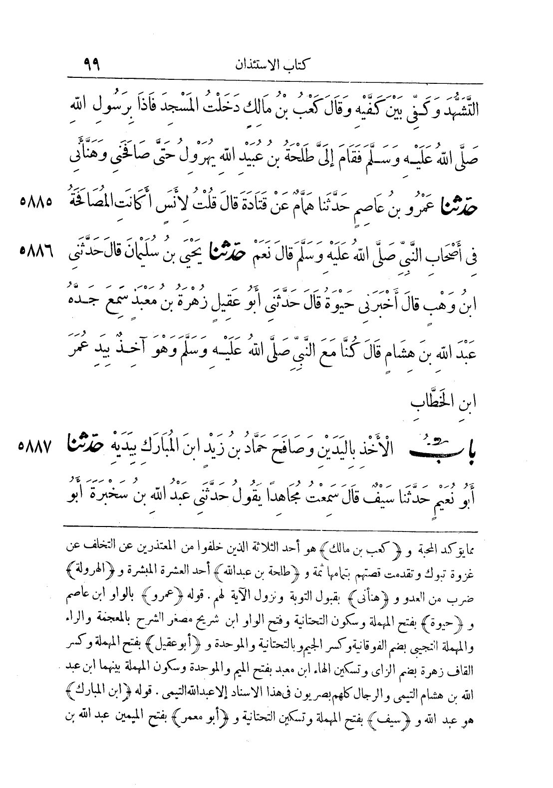 بَاب الْأَخْذِ بِالْيَدَيْنِ وَصَافَحَ حَمَّادُ بْنُ زَيْدٍ ابْنَ الْمُبَارَكِ بِيَدَيْهِ