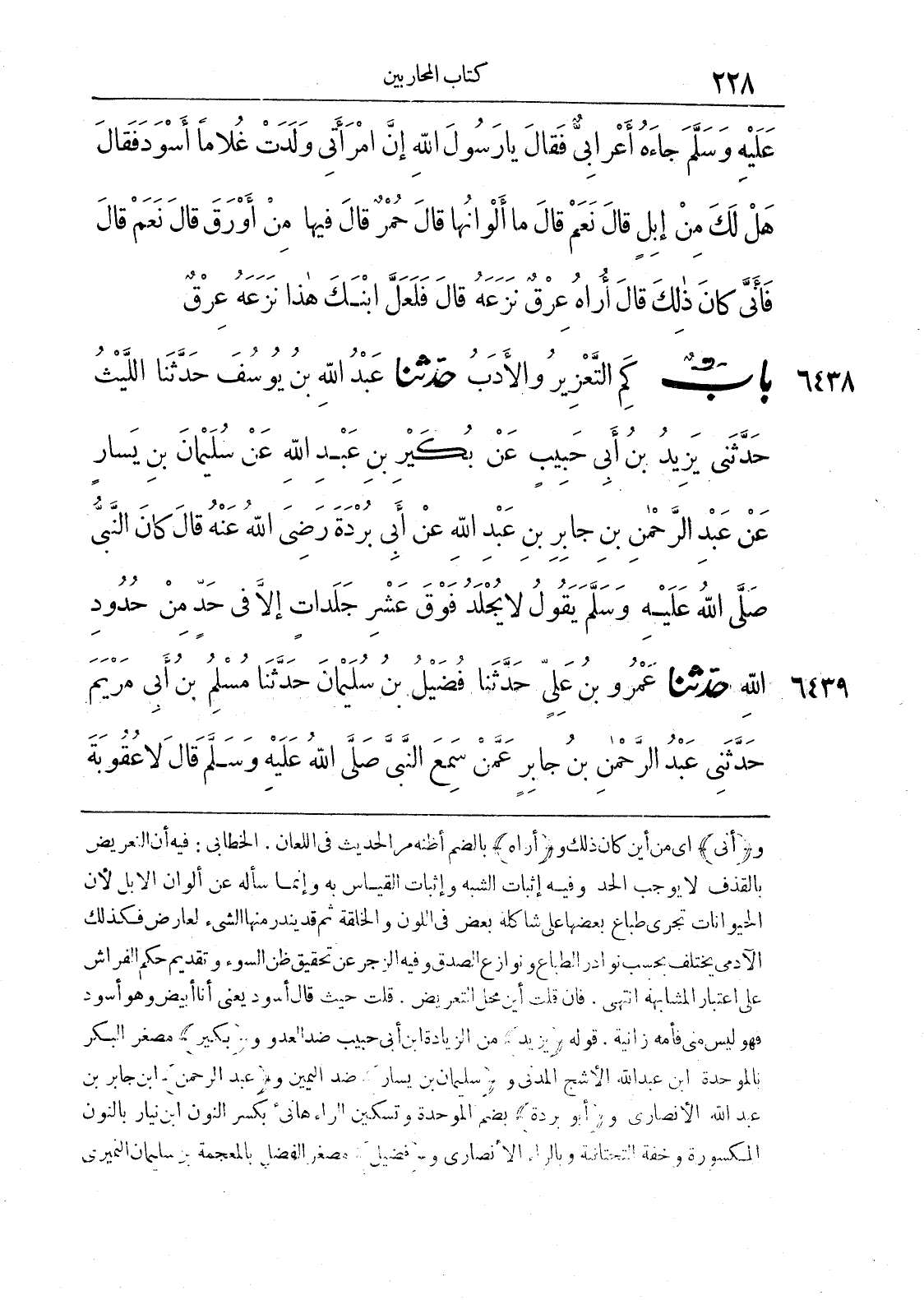 6438 - حَدَّثَنَا عَبْدُ اللَّهِ بْنُ يُوسُفَ حَدَّثَنَا اللَّيْثُ حَدَّثَنِي يَزِيدُ بْنُ أَبِي حَبِيبٍ عَنْ بُكَيْرِ بْنِ عَبْدِ اللَّهِ عَنْ سُلَيْمَانَ بْنِ يَسَارٍ عَنْ عَبْدِ الرَّحْمَنِ بْنِ جَابِرِ بْنِ عَبْدِ اللَّهِ عَنْ أَبِي بُرْدةَ رَضِيَ اللَّهُ عَنْهُ قَالَ كَانَ النَّبِيُّ صَلَّى اللَّهُ عَلَيْهِ وَسَلَّمَ يَقُولُ لَا يُجْلَدُ فَوْقَ عَشْرِ جَلَدَاتٍ إِلَّا فِي حَدٍّ مِنْ حُدُودِ اللَّهِ