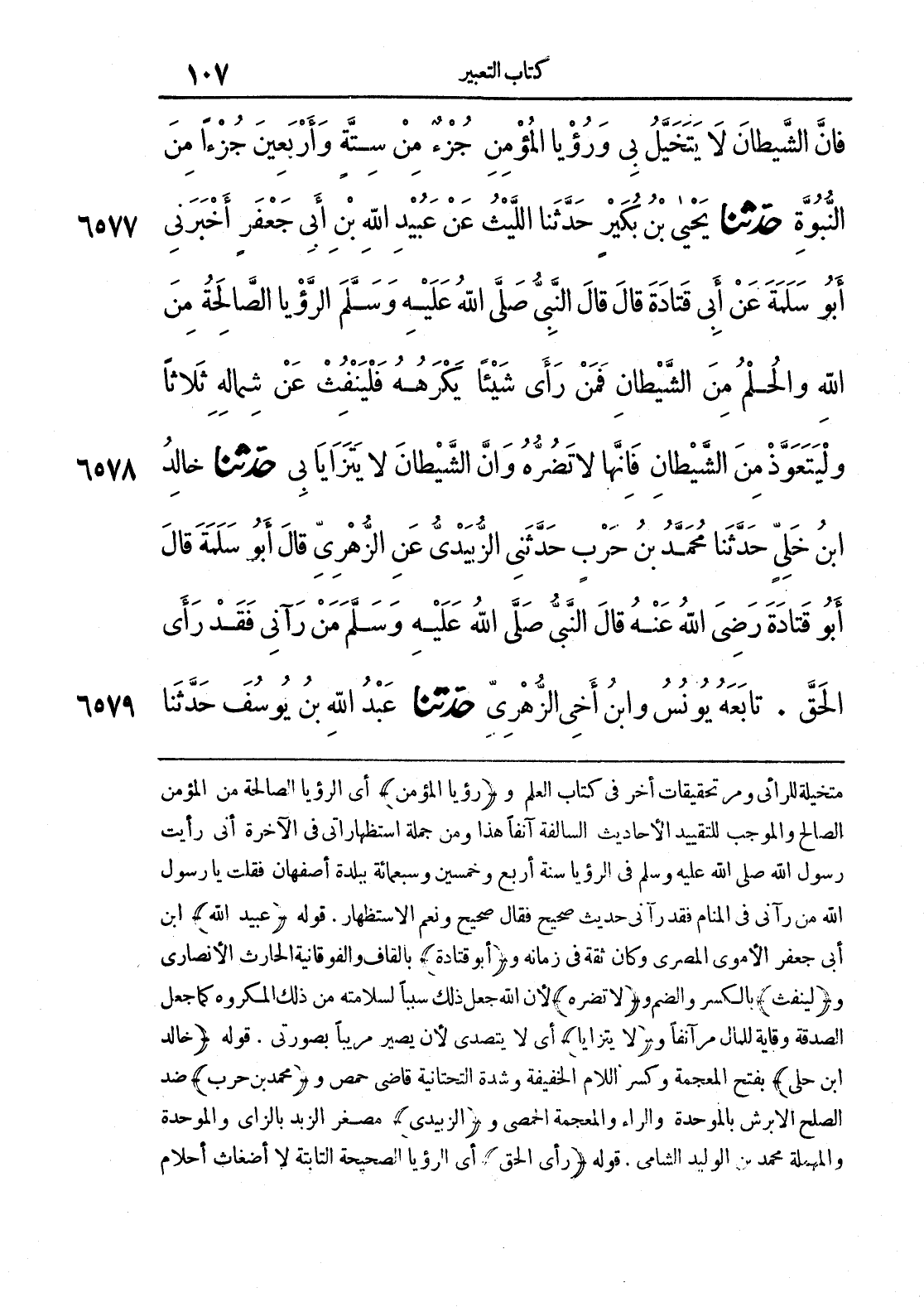 متخيلة للرائي ومر تحقيقات أخر في كتاب العلم و (رؤيا المؤمن) أي الرؤيا الصالحة من المؤمن الصالح والموجب للتقييد الأحاديث السالفة آنفا هذا ومن جملة استظهاراتي في الآخرة أني رأيت رسول الله صلى الله عليه وسلم في الرؤيا سنة أربع وخمسين وسبعمائة ببلدة أصفهان فقلت يا رسول الله من رآني في المنام فقد رآني حديث صحيح فقال صحيح ونعم الاستظهار. قوله (عبيد الله) ابن أبي جعفر الأموي المصري وكان ثقة في زمانه و (أبو قتادة) بالقاف والفوقانية الحارث الأنصاري و (لينفث) بالكسر والضم و (لا تضره) لأن الله جعل ذلك سببا لسلامته من ذلك المكروه كما جعل الصدقة وقاية للمال مر آنفا و (لا يتزايا) أي لا يتصدى لأن يصير مريبا بصورتي. قوله (خالد ابن حلي) بفتح المعجمة وكسر اللام الخفيفة وشدة التحتانية قاضي حمص و (محمد بن حرب) ضد الصلح الابرش بالموحدة والراء والمعجمة الحمصي و (الزبيدي) مصغر الزبد بالزاي والموحدة والمهملة محمد بن الوليد الشامي، قوله (رأى الحق) أي الرؤيا الصحيحة الثابتة لا أضغاث أحلام