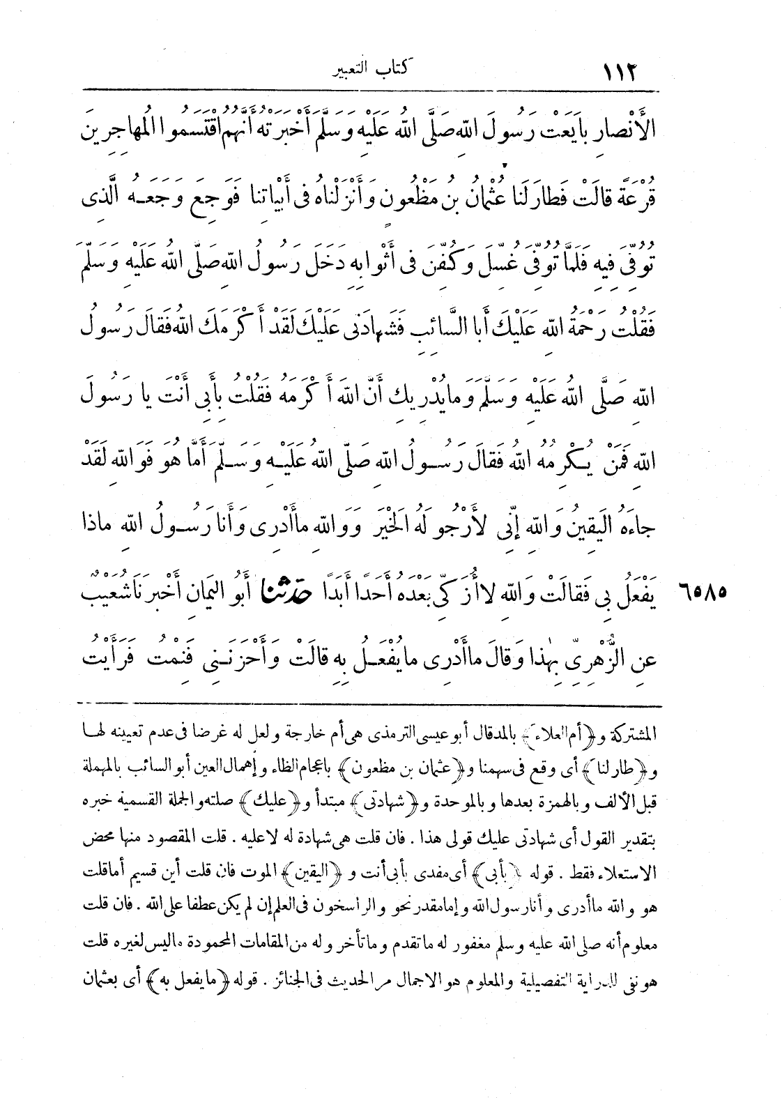 الْأَنْصَارِ بَايَعَتْ رَسُولَ اللَّهِ صَلَّى اللَّهُ عَلَيْهِ وَسَلَّمَ أَخْبَرَتْهُ أَنَّهُمْ اقْتَسَمُوا الْمُهَاجِرِينَ قُرْعَةً قَالَتْ فَطَارَ لَنَا عُثْمَانُ بْنُ مَظْعُونٍ وَأَنْزَلْنَاهُ فِي أَبْيَاتِنَا فَوَجِعَ وَجَعَهُ الَّذِي تُوُفِّيَ فِيهِ فَلَمَّا تُوُفِّيَ غُسِّلَ وَكُفِّنَ فِي أَثْوَابِهِ دَخَلَ رَسُولُ اللَّهِ صَلَّى اللَّهُ عَلَيْهِ وَسَلَّمَ فَقُلْتُ رَحْمَةُ اللَّهِ عَلَيْكَ أَبَا السَّائِبِ فَشَهَادَتِي عَلَيْكَ لَقَدْ أَكْرَمَكَ اللَّهُ فَقَالَ رَسُولُ اللَّهِ صَلَّى اللَّهُ عَلَيْهِ وَسَلَّمَ وَمَا يُدْرِيكِ أَنَّ اللَّهَ أَكْرَمَهُ فَقُلْتُ بِأَبِي أَنْتَ يَا رَسُولَ اللَّهِ فَمَنْ يُكْرِمُهُ اللَّهُ فَقَالَ رَسُولُ اللَّهِ صَلَّى اللَّهُ عَلَيْهِ وَسَلَّمَ أَمَّا هُوَ فَوَاللَّهِ لَقَدْ جَاءَهُ الْيَقِينُ وَاللَّهِ إِنِّي لَأَرْجُو لَهُ الْخَيْرَ وَوَاللَّهِ مَا أَدْرِي وَأَنَا رَسُولُ اللَّهِ مَاذَا يُفْعَلُ بِي فَقَالَتْ وَاللَّهِ لَا أُزَكِّي بَعْدَهُ أَحَدًا أَبَدًا