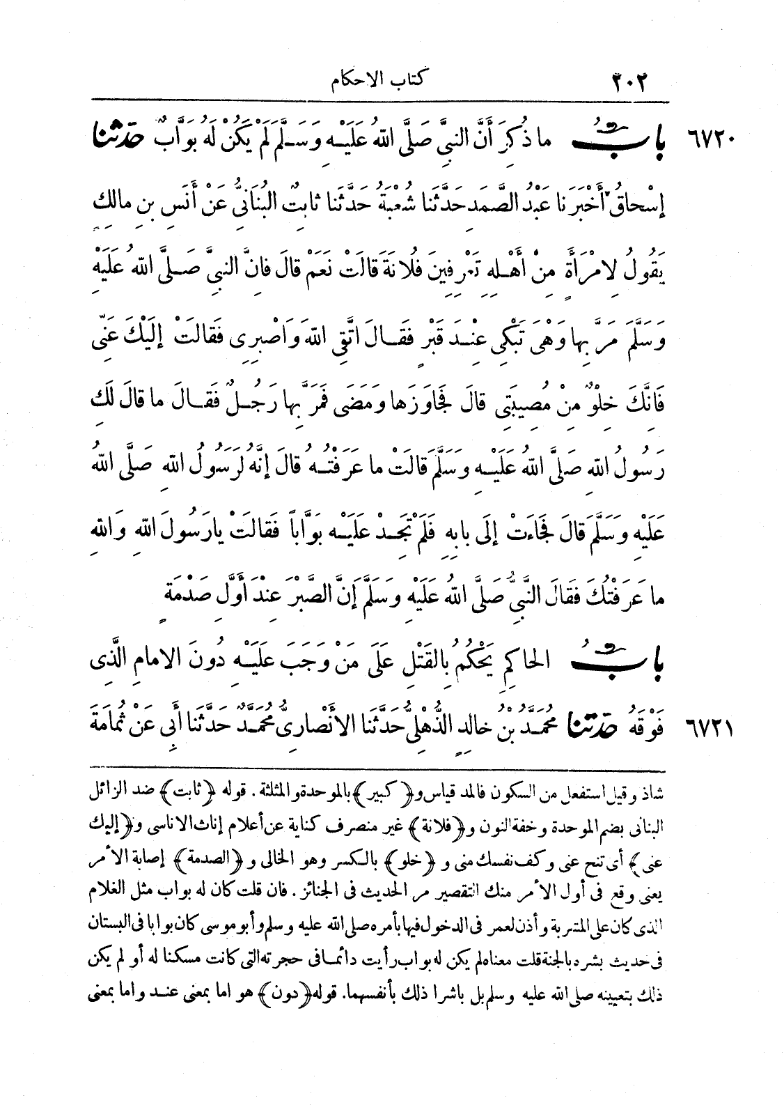 6721 - حَدَّثَنَا مُحَمَّدُ بْنُ خَالِدٍ الذُّهْلِيُّ حَدَّثَنَا الْأَنْصَارِيُّ مُحَمَّدُ بْنُ عَبْدِ اللَّهِ قَالَ حَدَّثَنِي أَبِي عَنْ ثُمَامَةَ