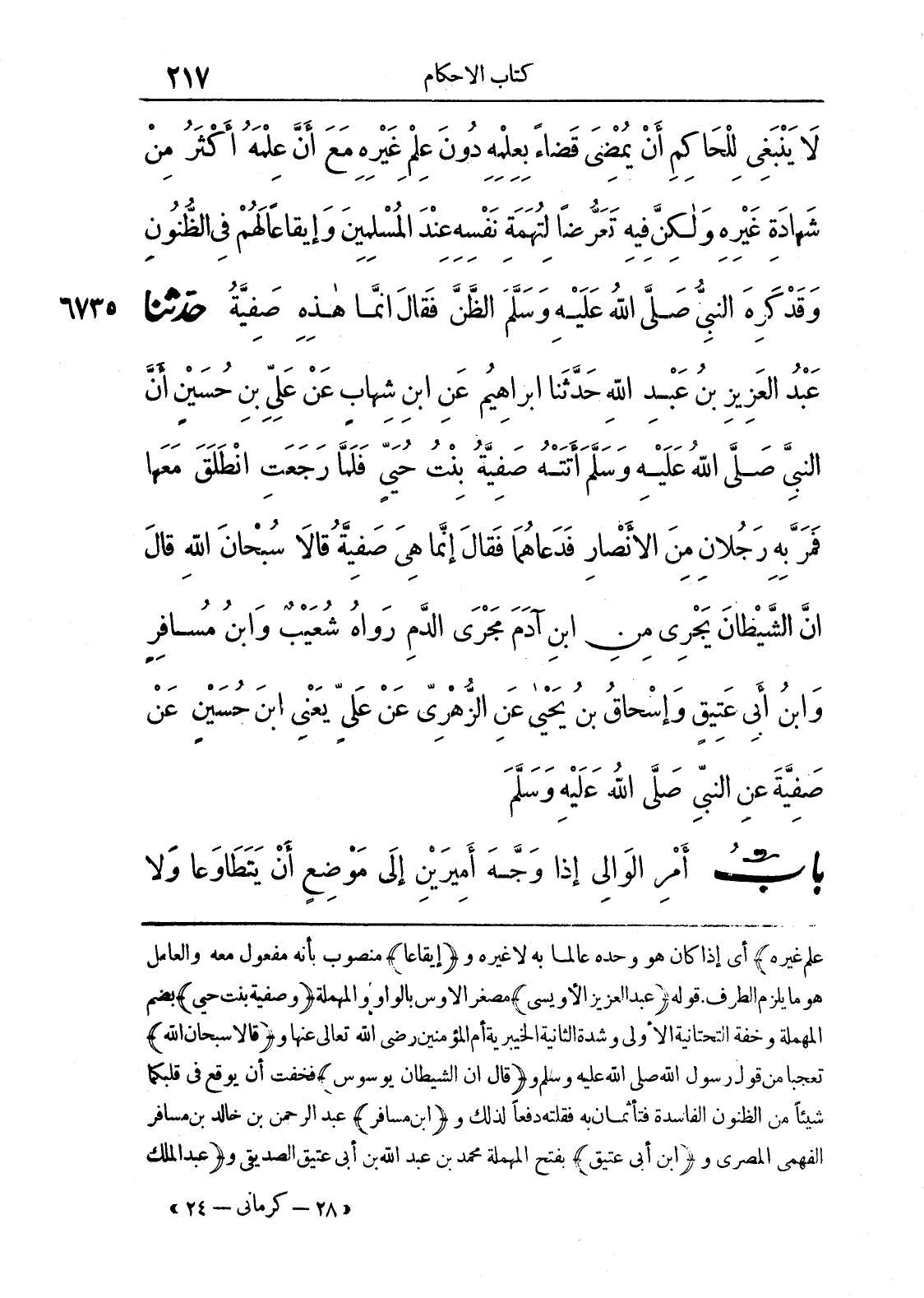 علم غيره) أي إذا كان هو وحده عالما به لا غيره و (إيقاعا) منصوب بأنه مفعول معه والعامل هو ما يلزم الطرف, قوله (عبد العزيز الأويسي) مصغر الأوس بالواو والمهملة (وصفية بنت حي) بضم المهملة وخفة التحتانية الأولى وشدة الثانية الخيبرية أم المؤمنين رضي الله تعالى عنها و (قالا سبحان الله) تعجبا من قول رسول الله صلى الله عليه وسلم و (قال إن الشيطان يوسوس) فخقت أن يوقع في قلبكما شيئا من الظنون الفاسدة فتأثمان به فقلته دفعا لذلك و (ابن مسافر) عبد الرحمن بن خالد بن مسافر الفهمي المصري و (ابن أبى عتيق) بفتح المهملة محمد بن عبد الله بن أبى عتيق الصديقي و (عبد الملك