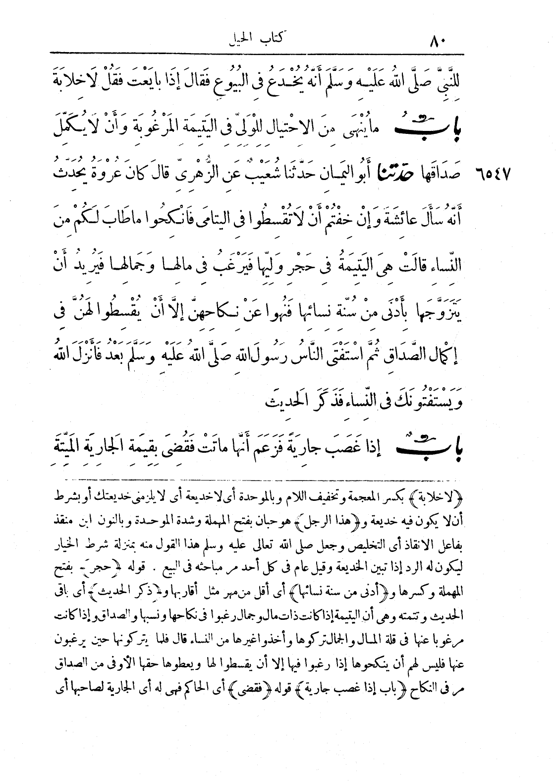 (لا خلابة) بكسر المعجمة وتخفيف اللام وبالموحدة أي لا خديعة أي لا يلزمني خديعتك أو بشرط أن لا يكون فيه خديعة و (هذا الرجل) هو حبان بفتح المهملة وشدة الموحدة وبالنون ابن منقذ بفاعل الإنقاذ أي التخليص وجعل صلى الله تعالى عليه وسلم هذا القول منه بمنزلة شرط الخيار ليكون له الرد إذا تبين الخديعة وقيل عام في كل أحد مر مباحثه في البيع. قوله (حجر) بفتح المهملة وكسرها و (أدنى من سنة نسائها) أي أقل من مهر مثل أقاربها و (ذكر الحديث) أي باقي الحديث وتتمته وهي أن اليتيمة إذا كانت ذات مال وجمال رغبوا في نكاحها ونسبها والصداق وإذا كانت مرغوبا عنها في قلة المال والجمال تركوها واخذوا غيرها من النساء قال فلما يتركونها حين يرغبون عنها فليس لهم أن ينكحوها إذا رغبوا فيها إلا أن يقسطوا لها ويعطوها حقها الأوفى من الصداق مر في النكاح (باب إذا غصب جارية) قوله (فقضى) أي الحاكم فهي له أي الجارية لصاحبها أي