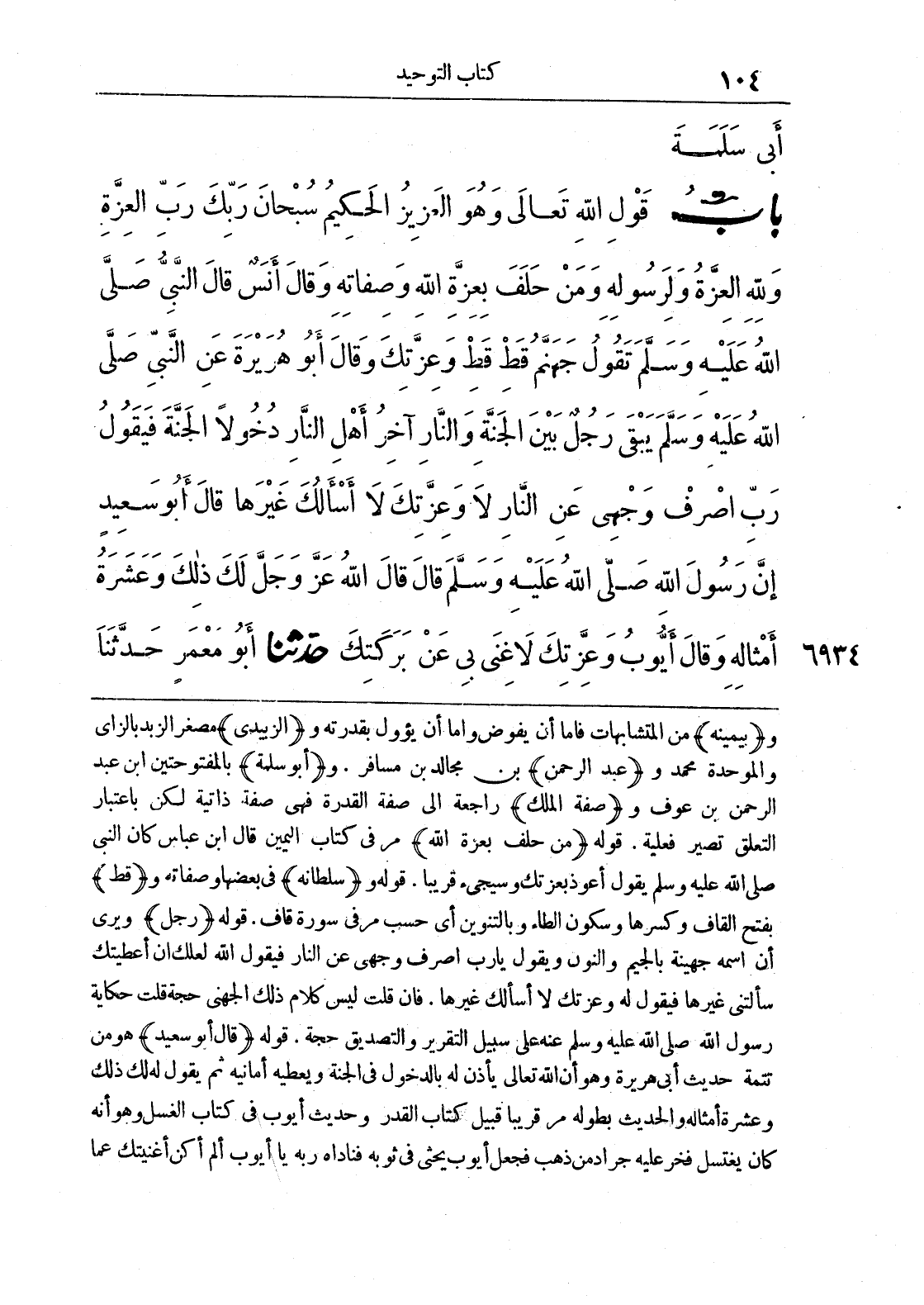 بَاب قَوْلِ اللَّهِ تَعَالَى {وَهُوَ الْعَزِيزُ الْحَكِيمُ} {سُبْحَانَ رَبِّكَ رَبِّ الْعِزَّةِ عَمَّا يَصِفُونَ} {وَلِلَّهِ الْعِزَّةُ وَلِرَسُولِهِ} وَمَنْ حَلَفَ بِعِزَّةِ اللَّهِ وَصِفَاتِهِ
