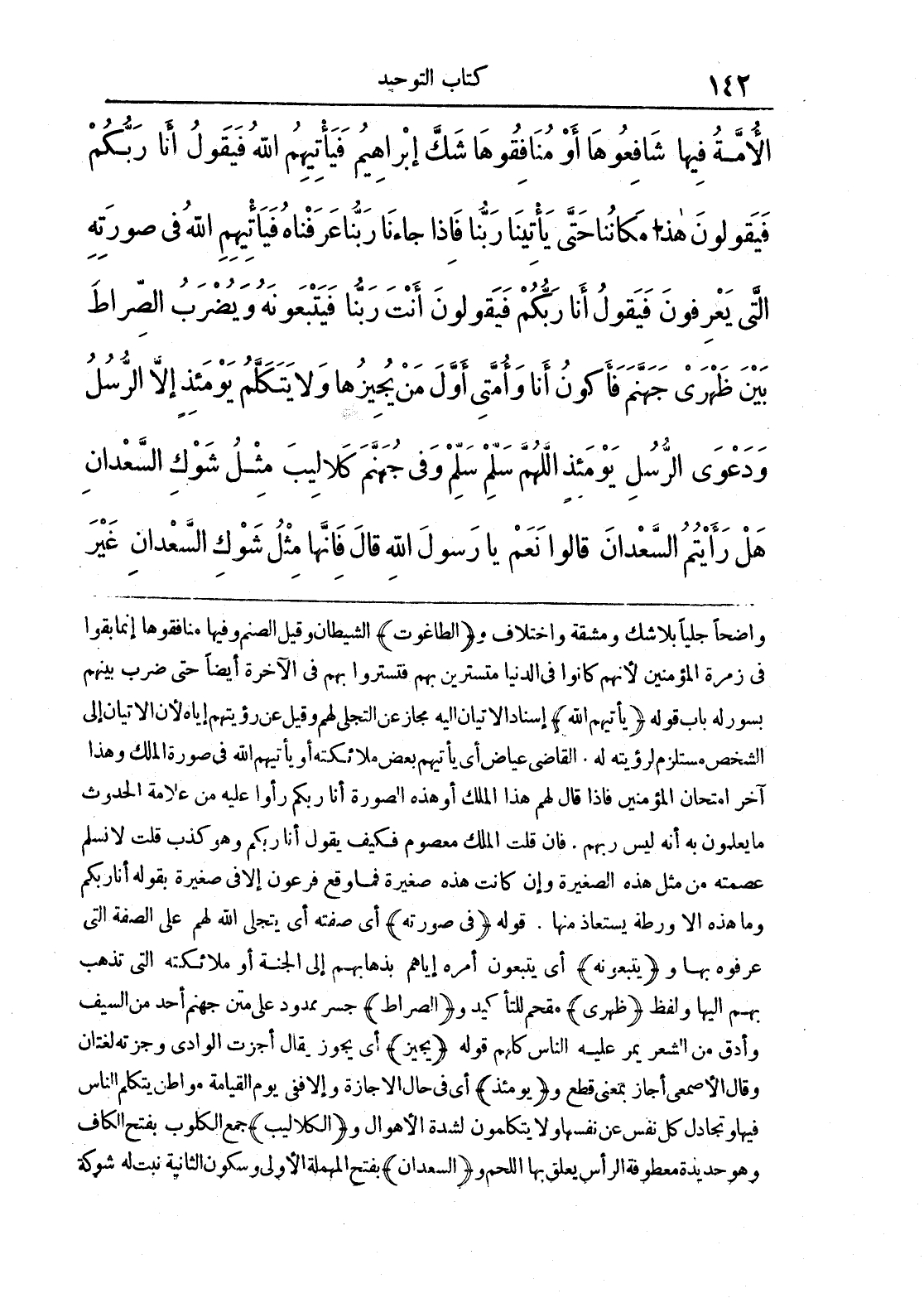 الْأُمَّةُ فِيهَا شَافِعُوهَا أَوْ مُنَافِقُوهَا شَكَّ إِبْرَاهِيمُ فَيَاتِيهِمْ اللَّهُ فَيَقُولُ أَنَا رَبُّكُمْ فَيَقُولُونَ هَذَا مَكَانُنَا حَتَّى يَاتِيَنَا رَبُّنَا فَإِذَا جَاءَنَا رَبُّنَا عَرَفْنَاهُ فَيَاتِيهِمْ اللَّهُ فِي صُورَتِهِ الَّتِي يَعْرِفُونَ فَيَقُولُ أَنَا رَبُّكُمْ فَيَقُولُونَ أَنْتَ رَبُّنَا فَيَتْبَعُونَهُ وَيُضْرَبُ الصِّرَاطُ بَيْنَ ظَهْرَيْ جَهَنَّمَ فَأَكُونُ أَنَا وَأُمَّتِي أَوَّلَ مَنْ يُجِيزُهَا وَلَا يَتَكَلَّمُ يَوْمَئِذٍ إِلَّا الرُّسُلُ وَدَعْوَى الرُّسُلِ يَوْمَئِذٍ اللَّهُمَّ سَلِّمْ سَلِّمْ وَفِي جَهَنَّمَ كَلَالِيبُ مِثْلُ شَوْكِ السَّعْدَانِ هَلْ رَأَيْتُمْ السَّعْدَانَ قَالُوا نَعَمْ يَا رَسُولَ اللَّهِ قَالَ فَإِنَّهَا مِثْلُ شَوْكِ السَّعْدَانِ غَيْرَ