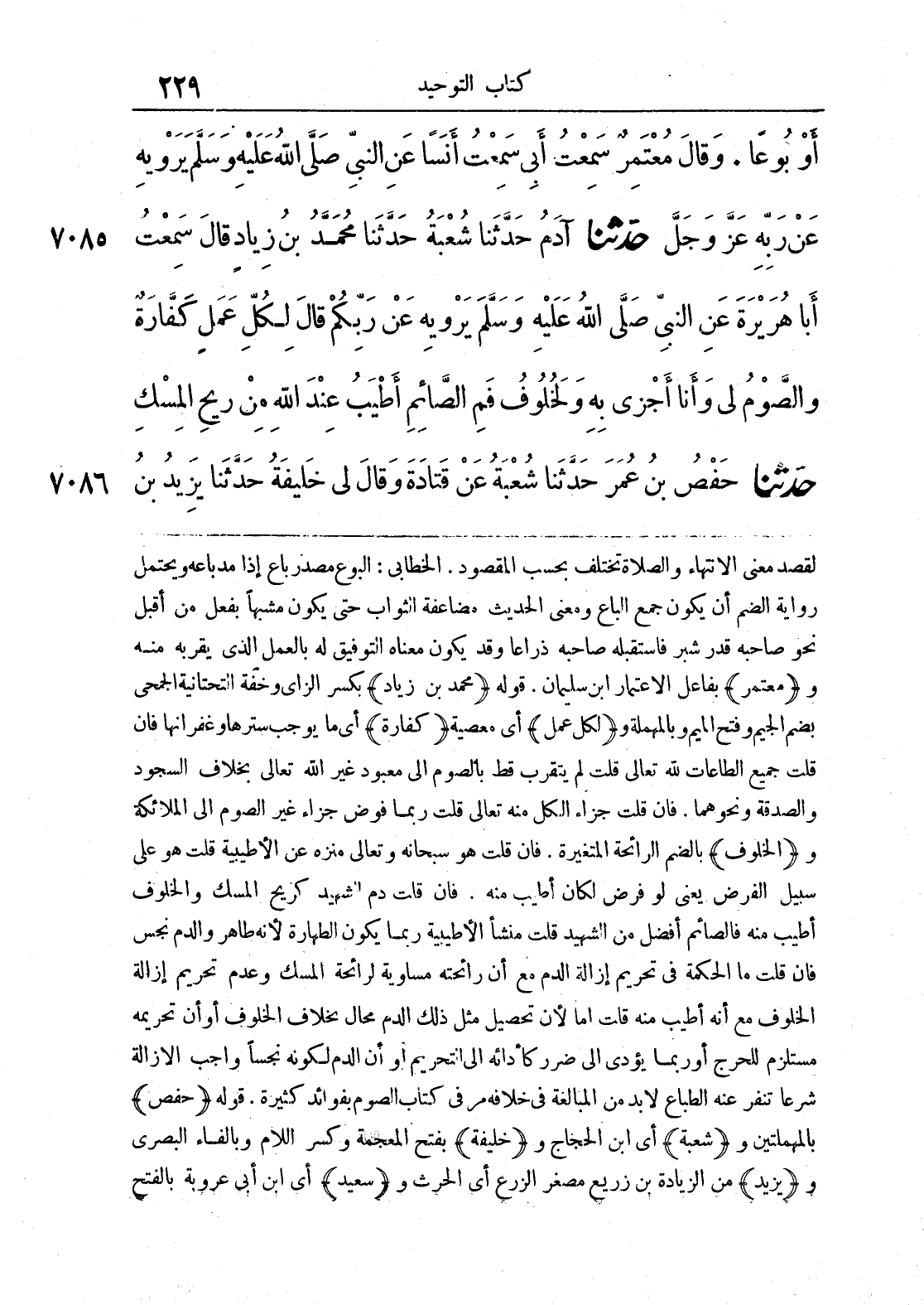 7086 - حَدَّثَنَا حَفْصُ بْنُ عُمَرَ حَدَّثَنَا شُعْبَةُ عَنْ قَتَادَةَ ح وقَالَ لِي خَلِيفَةُ حَدَّثَنَا يَزِيدُ بْنُ