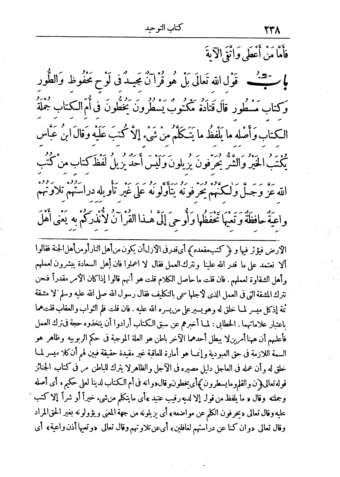 بَاب قَوْلِ اللَّهِ تَعَالَى {بَلْ هُوَ قُرْآنٌ مَجِيدٌ فِي لَوْحٍ مَحْفُوظٍ} {وَالطُّورِ وَكِتَابٍ مَسْطُورٍ}