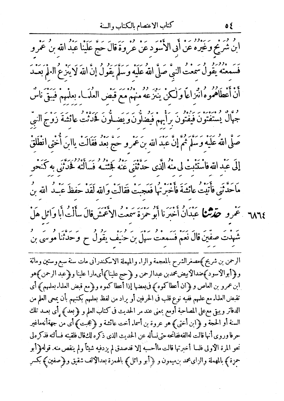ابْنُ شُرَيْحٍ وَغَيْرُهُ عَنْ أَبِي الْأَسْوَدِ عَنْ عُرْوَةَ قَالَ حَجَّ عَلَيْنَا عَبْدُ اللَّهِ بْنُ عَمْرٍو فَسَمِعْتُهُ يَقُولُ سَمِعْتُ النَّبِيَّ صَلَّى اللَّهُ عَلَيْهِ وَسَلَّمَ يَقُولُ إِنَّ اللَّهَ لَا يَنْزِعُ الْعِلْمَ بَعْدَ أَنْ أَعْطَاكُمُوهُ انْتِزَاعًا وَلَكِنْ يَنْتَزِعُهُ مِنْهُمْ مَعَ قَبْضِ الْعُلَمَاءِ بِعِلْمِهِمْ فَيَبْقَى نَاسٌ جُهَّالٌ يُسْتَفْتَوْنَ فَيُفْتُونَ بِرَايِهِمْ فَيُضِلُّونَ وَيَضِلُّونَ فَحَدَّثْتُ بِهِ عَائِشَةَ زَوْجَ النَّبِيِّ صَلَّى اللَّهُ عَلَيْهِ وَسَلَّمَ ثُمَّ إِنَّ عَبْدَ اللَّهِ بْنَ عَمْرٍو حَجَّ بَعْدُ فَقَالَتْ يَا ابْنَ أُخْتِي انْطَلِقْ إِلَى عَبْدِ اللَّهِ فَاسْتَثْبِتْ لِي مِنْهُ الَّذِي حَدَّثْتَنِي عَنْهُ فَجِئْتُهُ فَسَأَلْتُهُ فَحَدَّثَنِي بِهِ كَنَحْوِ مَا حَدَّثَنِي فَأَتَيْتُ عَائِشَةَ فَأَخْبَرْتُهَا فَعَجِبَتْ فَقَالَتْ وَاللَّهِ لَقَدْ حَفِظَ عَبْدُ اللَّهِ بْنُ عَمْرٍو