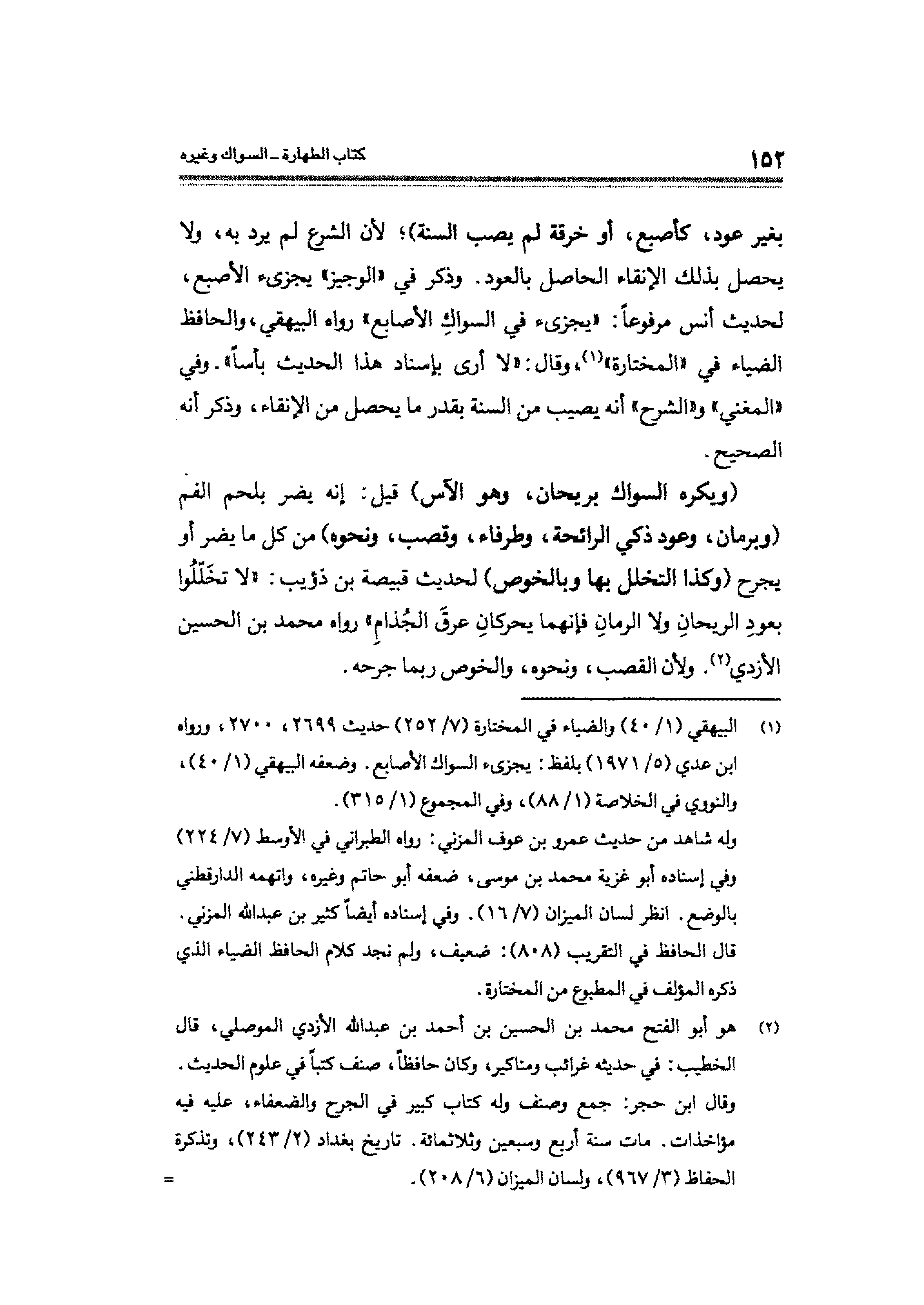 (¬١) البيهقي (١/ ٤٠) والضياء في المختارة (٧/ ٢٥٢) حديث ٢٦٩٩، ٢٧٠٠، ورواه ابن عدي (٥/ ١٩٧١) بلفظ: يجزئ السواك الأصابع. وضعفه البيهقي (١/ ٤٠)، والنووي في الخلاصة (١/ ٨٨)، وفي المجموع (١/ ٣١٥).