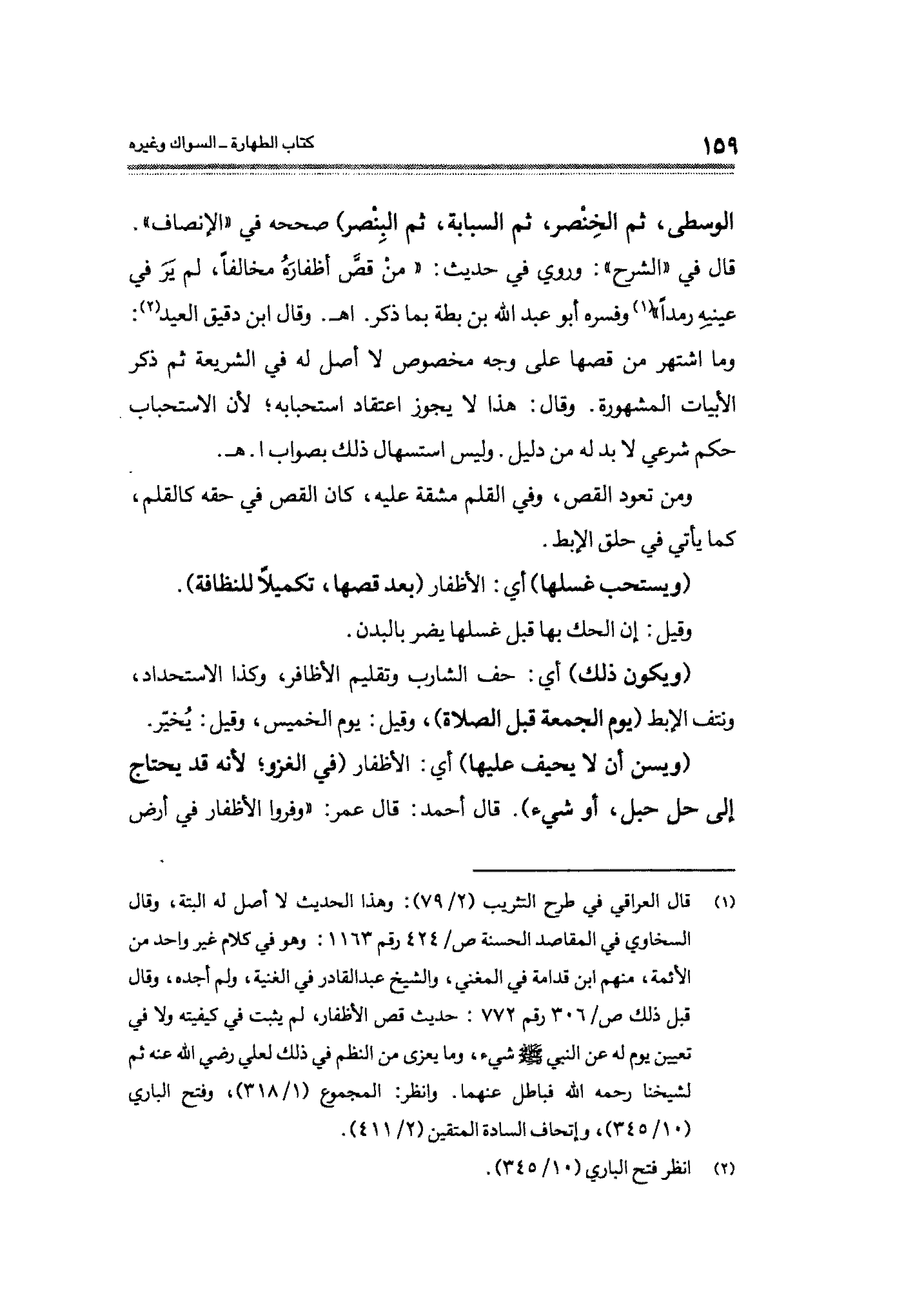 (¬١) قال العراقي في طرح التثريب (٢/ ٧٩): وهذا الحديث لا أصل له البتة، وقال السخاوي في المقاصد الحسنة ص / ٤٢٤ رقم ١١٦٣: وهو في كلام غير واحد من الأئمة، منهم ابن قدامة في المغني، والشيخ عبد القادر في الغنية، ولم أجده، وقال قبل ذلك ص / ٣٠٦ رقم ٧٧٢: حديث قص الأظفار، لم يثبت في كيفيته ولا في تعيين يوم له عن النبي - صلى الله عليه وسلم - شيء، وما يعزى من النظم في ذلك لعلي رضي الله عنه ثم لشيخنا رحمه الله فباطل عنهما. وانظر: المجموع (١/ ٣١٨)، وفتح الباري (١٠/ ٣٤٥)، وإتحاف السادة المتقين (٢/ ٤١١).