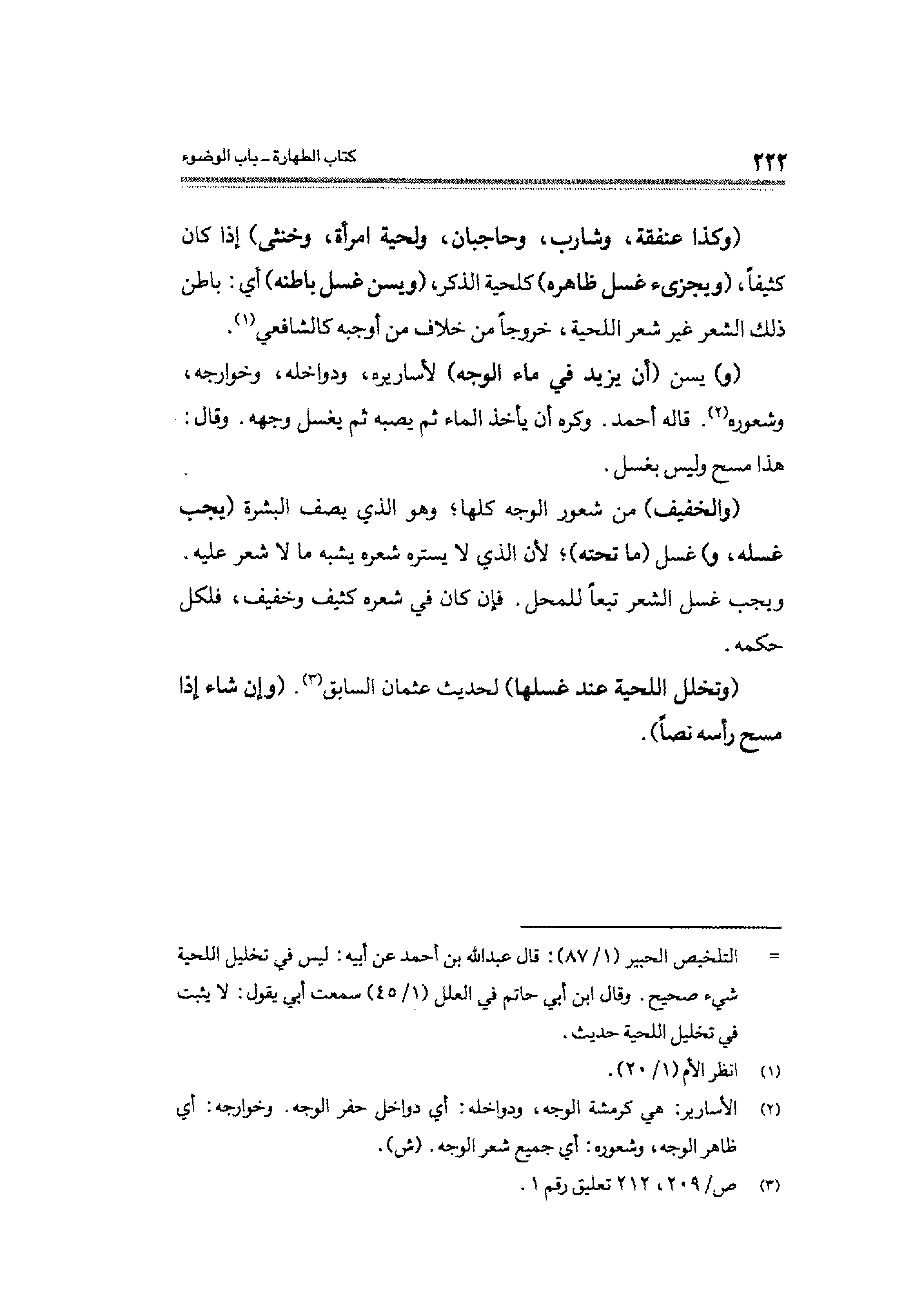 (والخفيف) من شعور الوجه كلها، وهو الذي يصف البشرة (يجب غسله، و) غسل (ما تحته)؛ لأن الذي لا يستره شعره يشبه ما لا شعر عليه. ويجب غسل الشعر تبعًا للمحل. فإن كان في شعره كثيف وخفيف، فلكل حكمه.