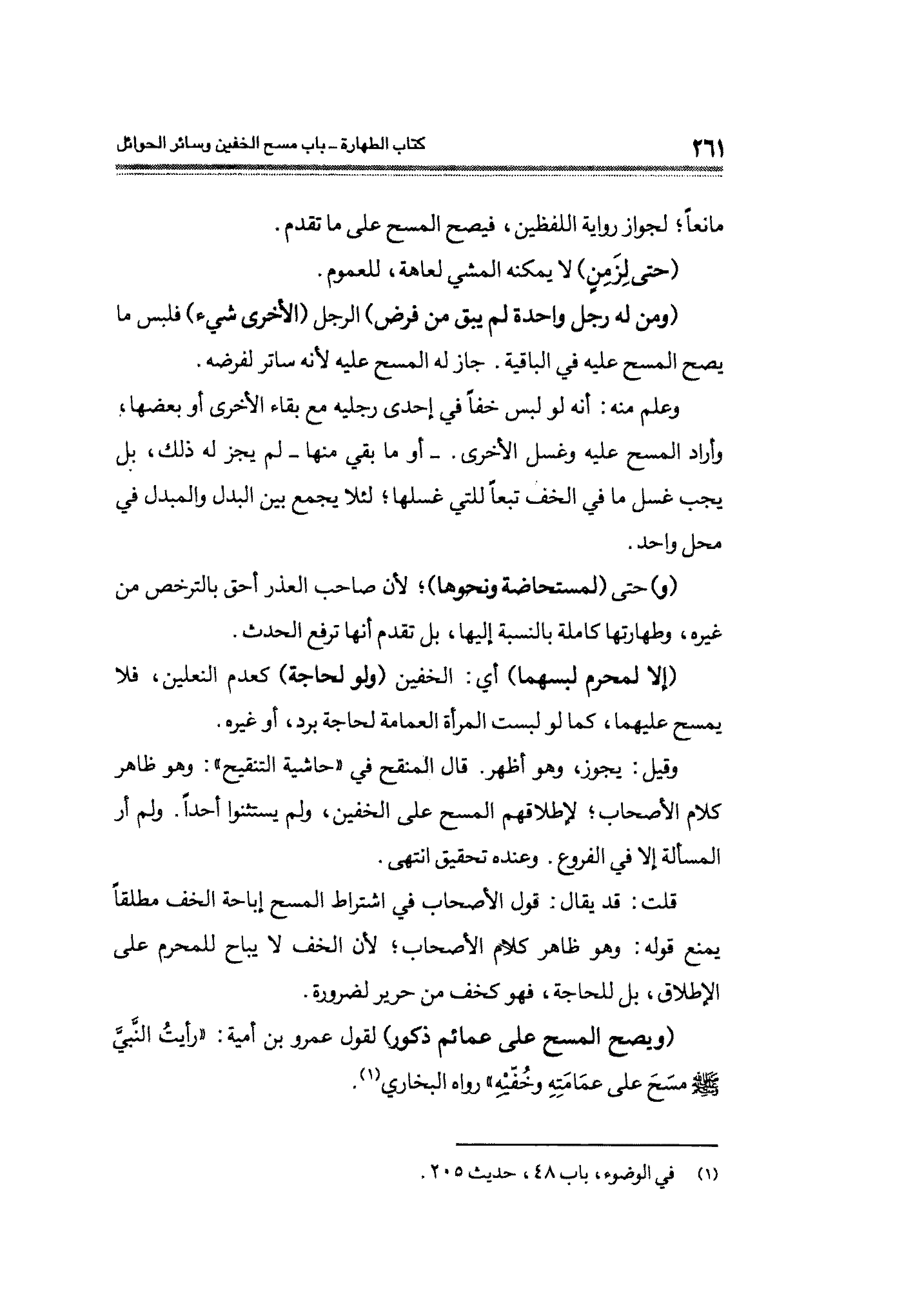 (¬١) في الوضوء باب ٤٨، حديث ٢٠٥.