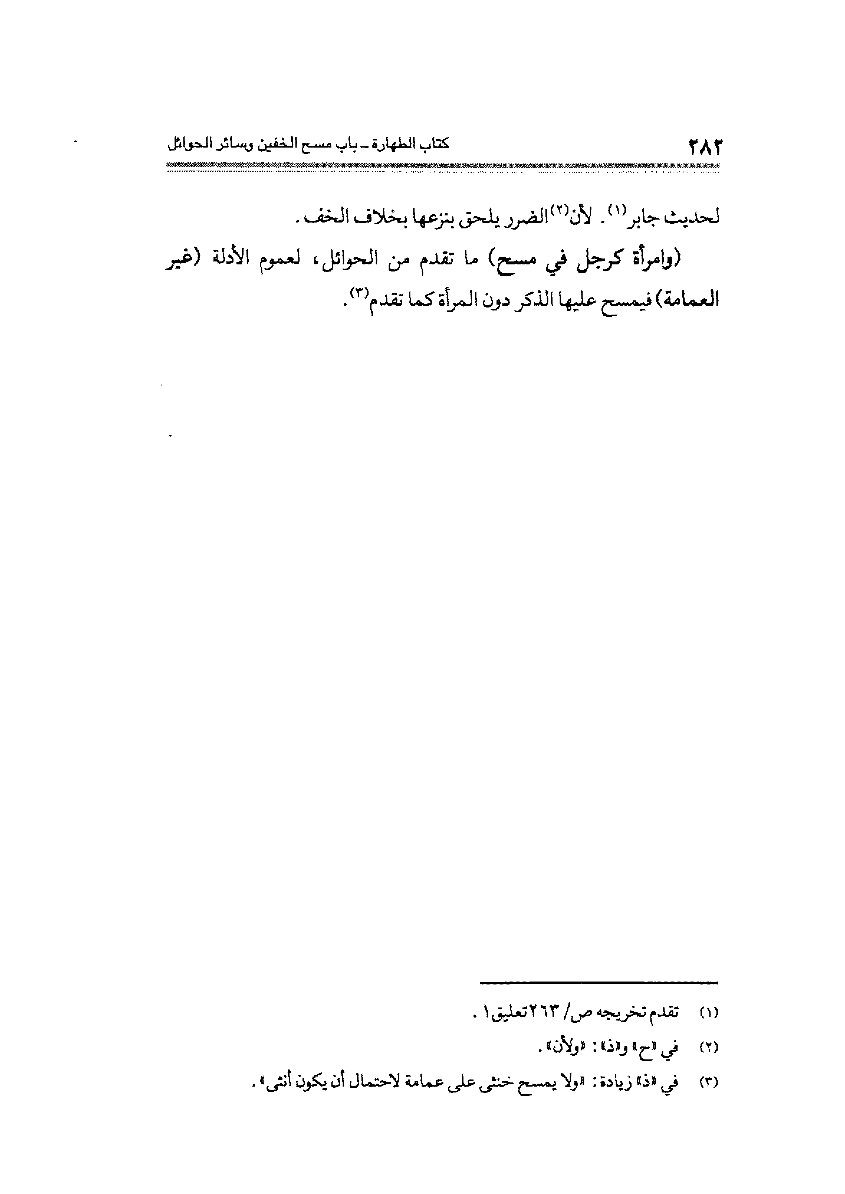 (¬٣) في "ذ" زيادة: "ولا يمسح خنثى على عمامة لاحتمال أن يكون أنثى".