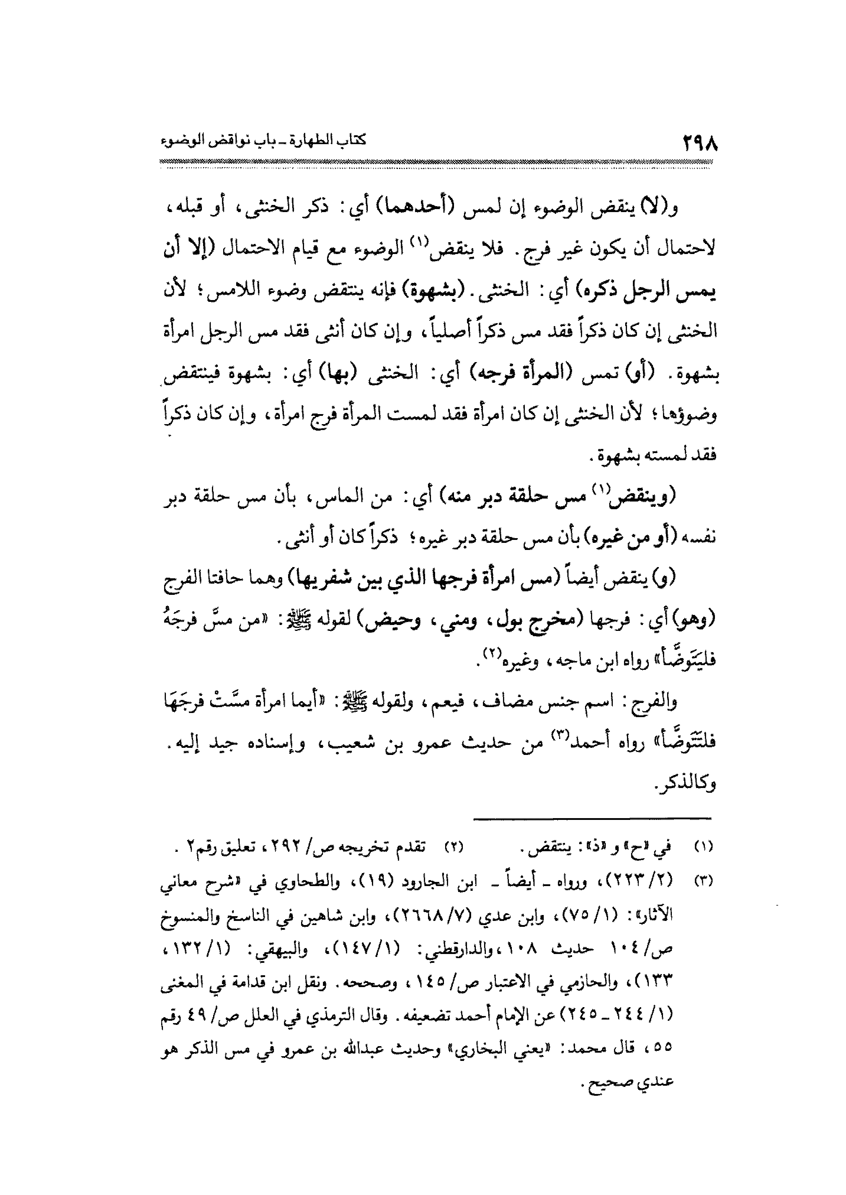 (¬٣) (٢/ ٢٢٣)، ورواه -أيضًا- ابن الجارود (١٩) "والطحاوي في "شرح معاني الآثار": (١/ ٧٥)، وابن عدي (٧/ ٢٦٦٨)، وابن شاهين في الناسخ والمنسوخ ص / ١٠٤ حديث ١٠٨، والدارقطني: (١/ ١٤٧)، والبيهقي: (١/ ١٣٢، ١٣٣)، والحازمي في الاعتبار ص/ ١٤٥، وصححه. ونقل ابن قدامة في المغنى (١/ ٢٤٤ - ٢٤٥) عن الإمام أحمد تضعيفه. وقال الترمذي في العلل ص/ ٤٩ رقم ٥٥، قال محمد: "يعني البخارى" وحديث عبد الله بن عمرو في مس الذكر هو عندى صحيح.