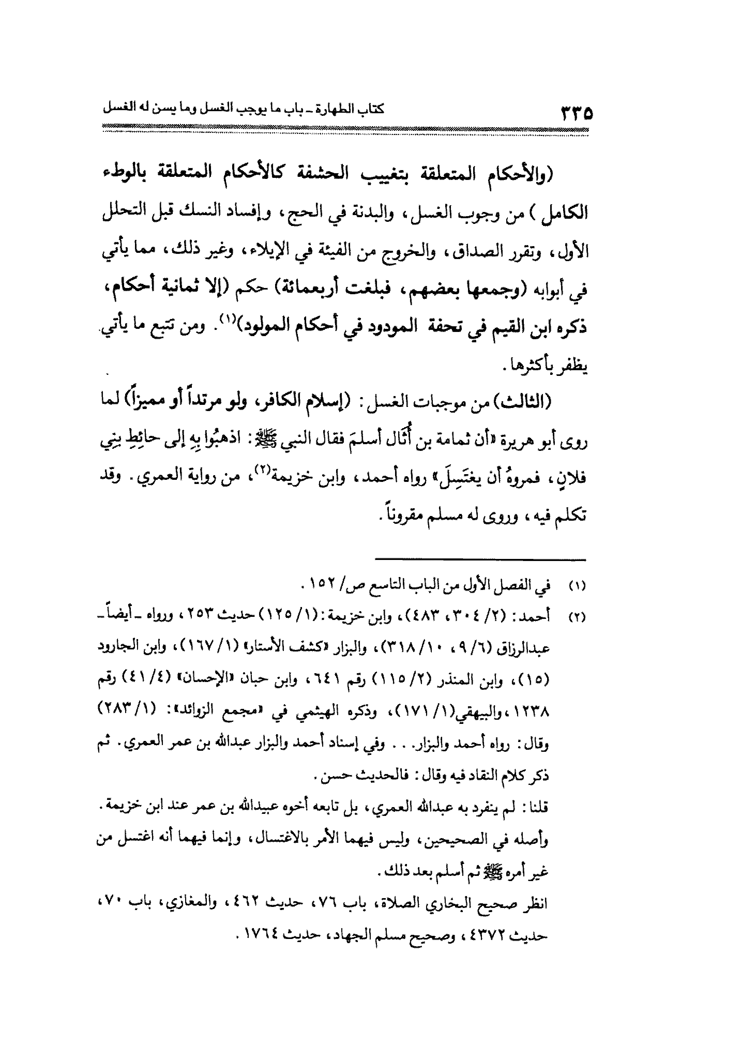 قلنا: لم ينفرد به عبد الله العمري، بل تابعه أخوه عبيد الله بن عمر عند ابن خزيمة. وأصله في الصحيحين، وليس فيهما الأمر بالاغتسال، وإنما فيهما أنه اغتسل من غير أمره - صلى الله عليه وسلم - ثم أسلم بعد ذلك.