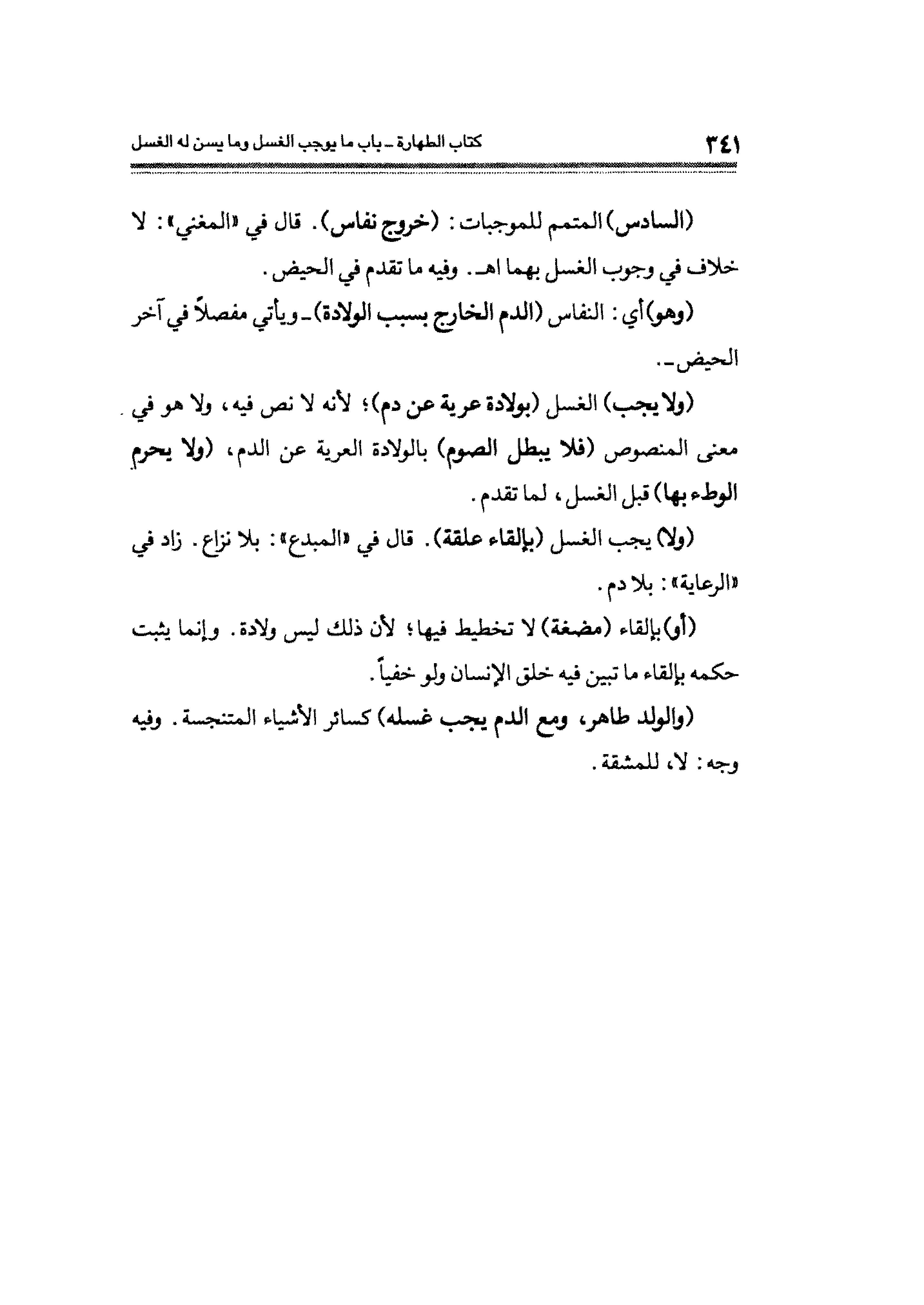 (ولا) يجب الغسل (بإلقاء علقة). قال في "المبدع": بلا نزاع. زاد في "الرعاية": بلا دم.