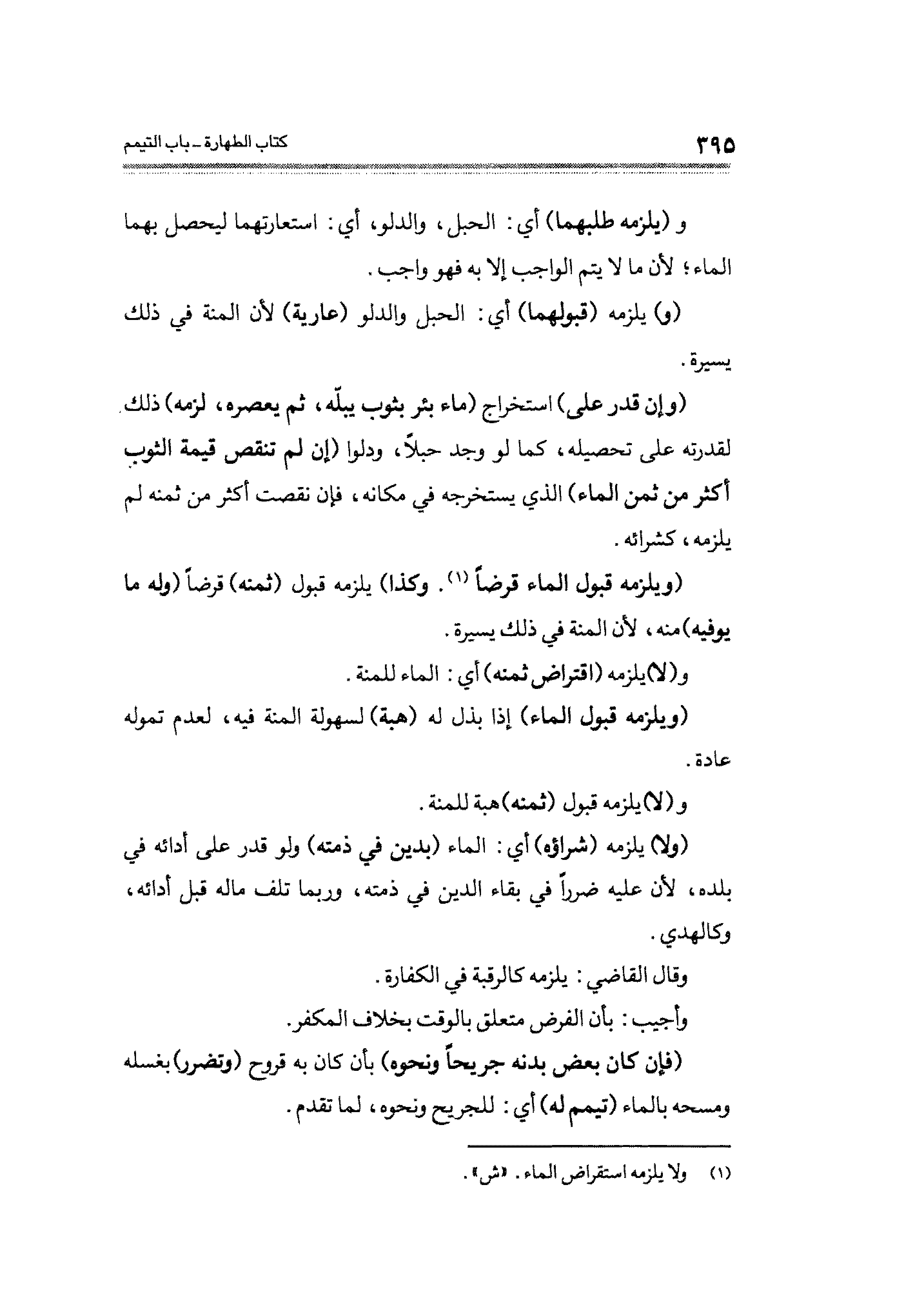 (¬١) ولا يلزمه استقراض الماء. "ش".