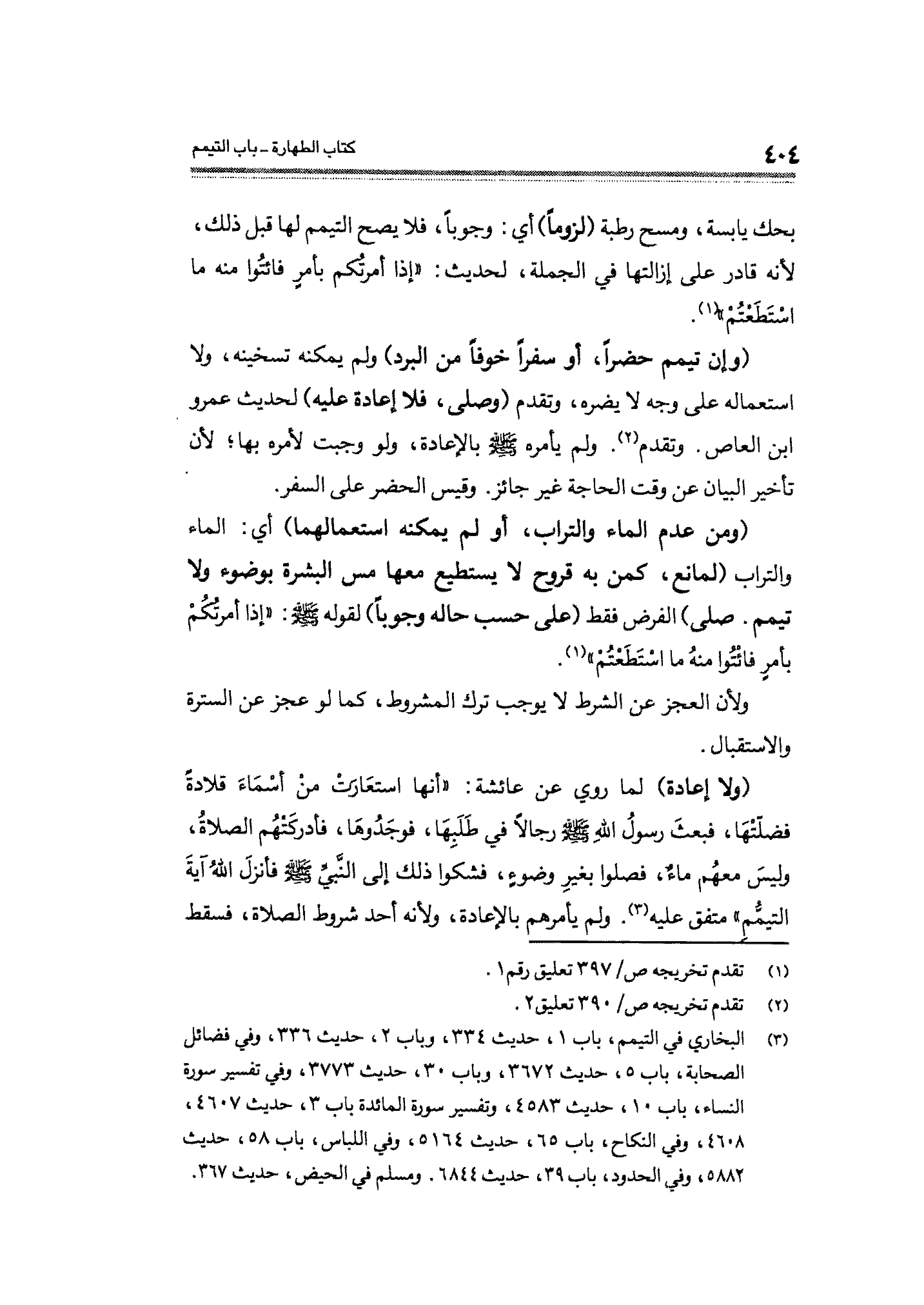 (¬٣) البخاري في التيمم، باب ١، حديث ٣٣٤، وباب ٢، حديث ٣٣٦، وفي فضائل الصحابة، باب ٥، حديث ٣٦٧٢، وباب ٣٠، حديث ٣٧٧٣، وفي تفسير سورة النساء، باب ١٠، حديث ٤٥٨٣، وتفسير سورة المائدة باب ٣ حديث ٤٦٠٧، ٤٦٠٨، وفي النكاح، باب ٦٥، حديث ٥١٦٤، وفي اللباس، باب ٥٨، حديث ٥٨٨٢، وفي الحدود، باب ٣٩، حديث ٦٨٤٤. ومسلم في الحيض، حديث ٣٦٧.