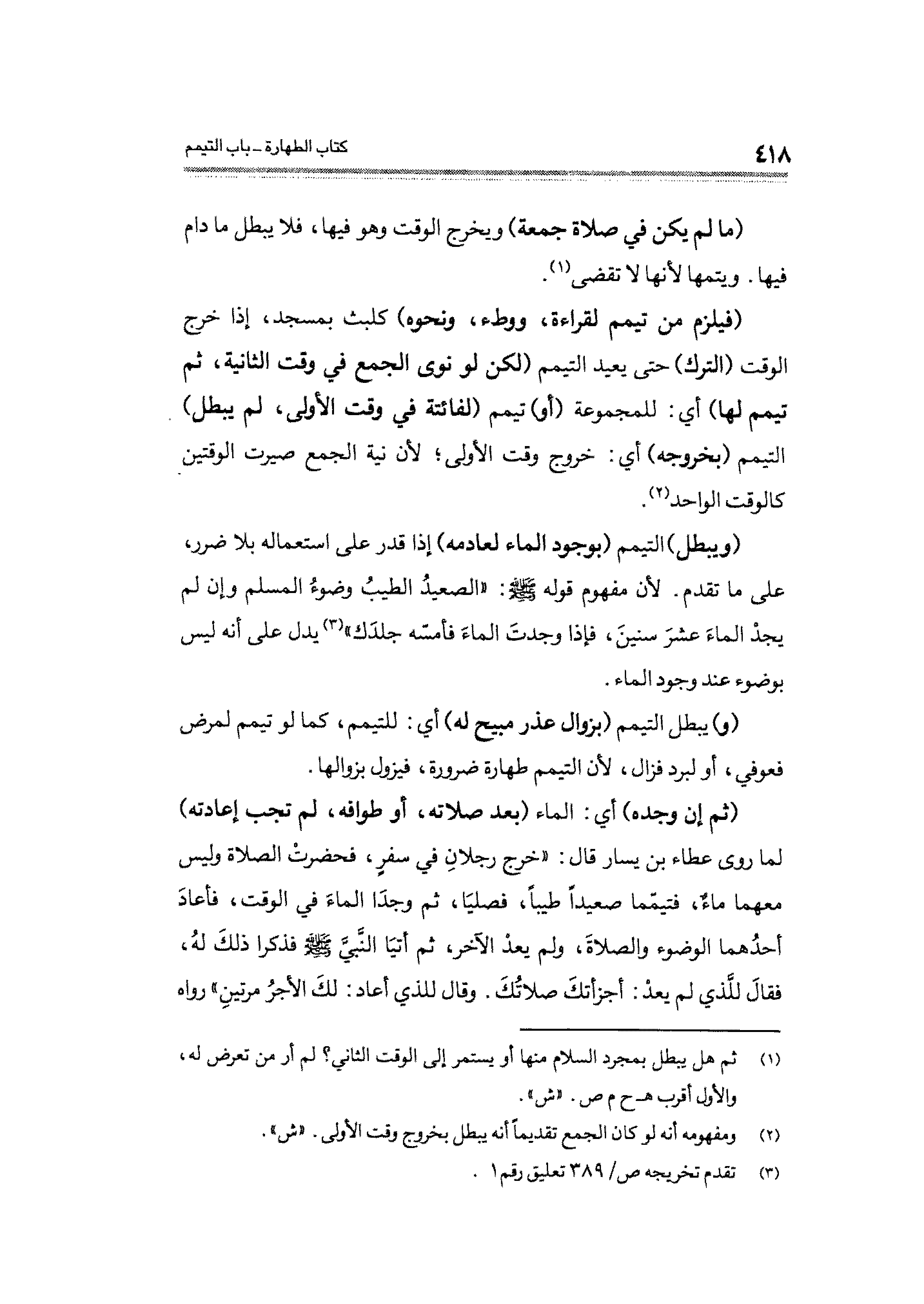 (¬١) ثم هل يبطل بمجرد السلام منها أو يستمر إلي الوقت الثاني؟ لم أر من تعرض له، والأول أقرب هـ ح م ص. "ش".