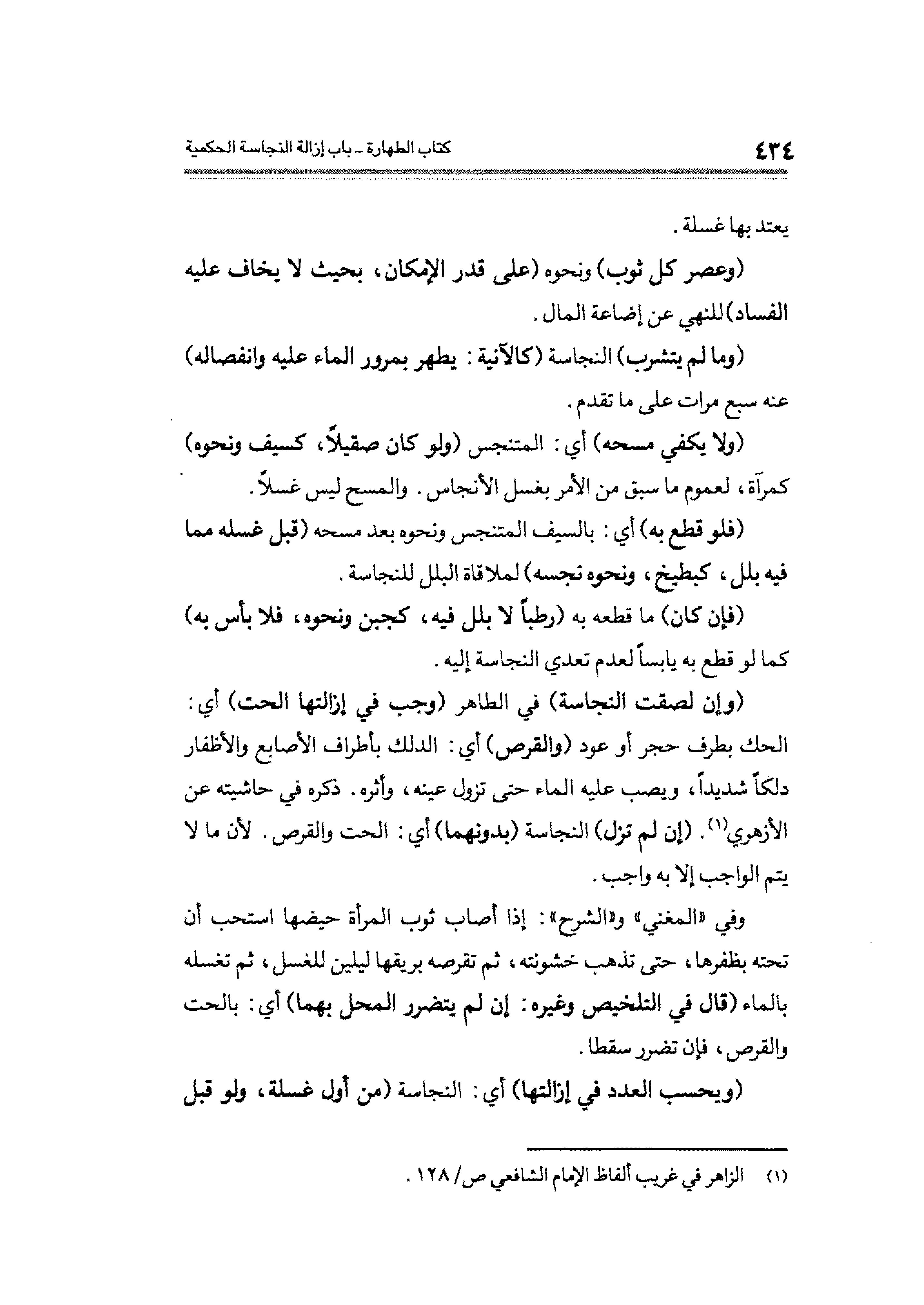 (¬١) الزاهر في غريب ألفاظ الإمام الشافعي ص/ ١٢٨.