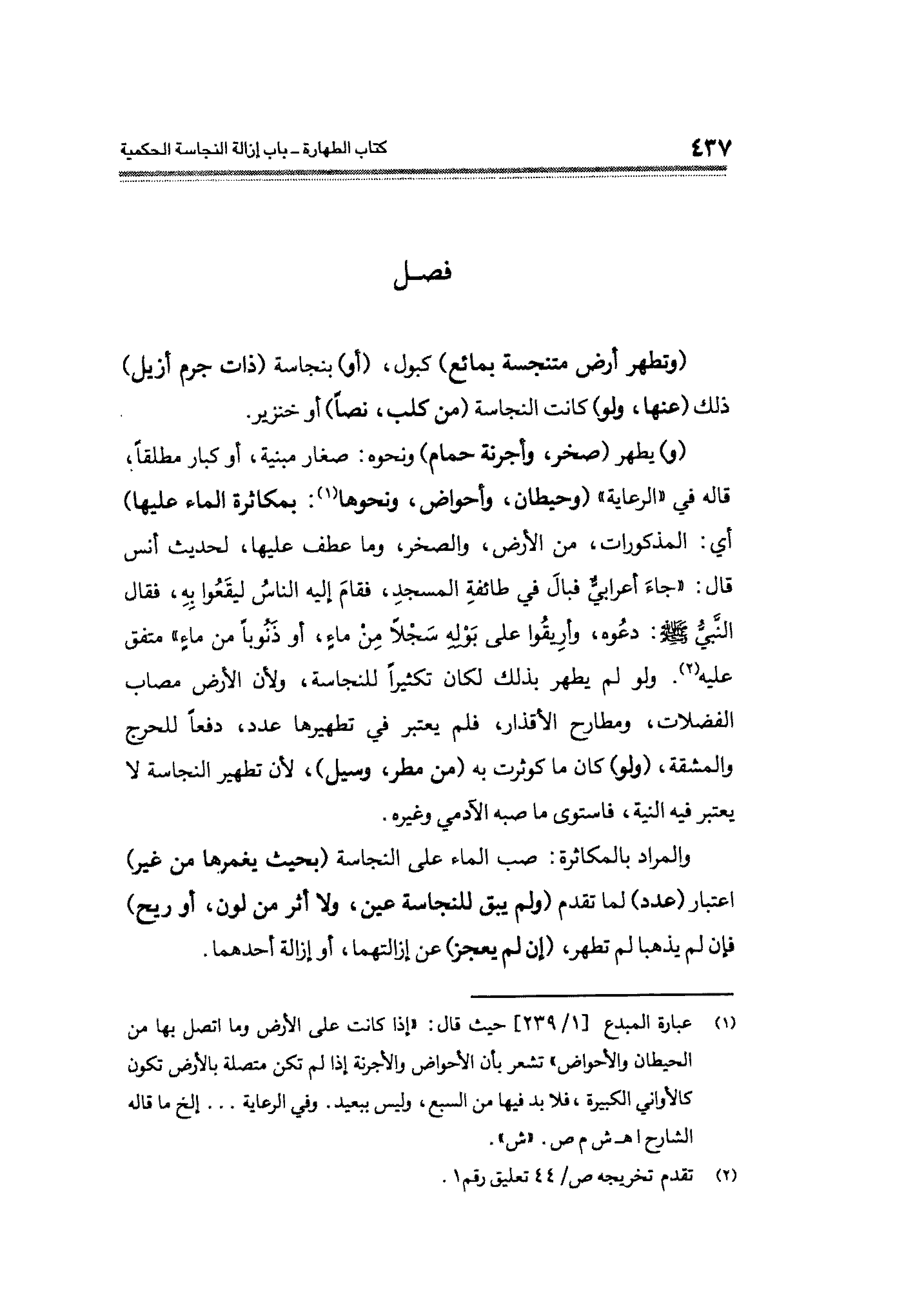 (¬١) عبارة المبدع [١/ ٢٣٩] حيث قال: "إذا كانت على الأرض وما اتصل بها من الحيطان والأحواض" تشعر بأن الأحواض والأجرنة إذا لم تكن متصلة بالأرض تكون كالأواني الكبيرة، فلا بد فيها من السبع، وليس ببعيد. وفي الرعاية. . . إلخ ما قاله الشارح ا هـ ش م ص. "ش".